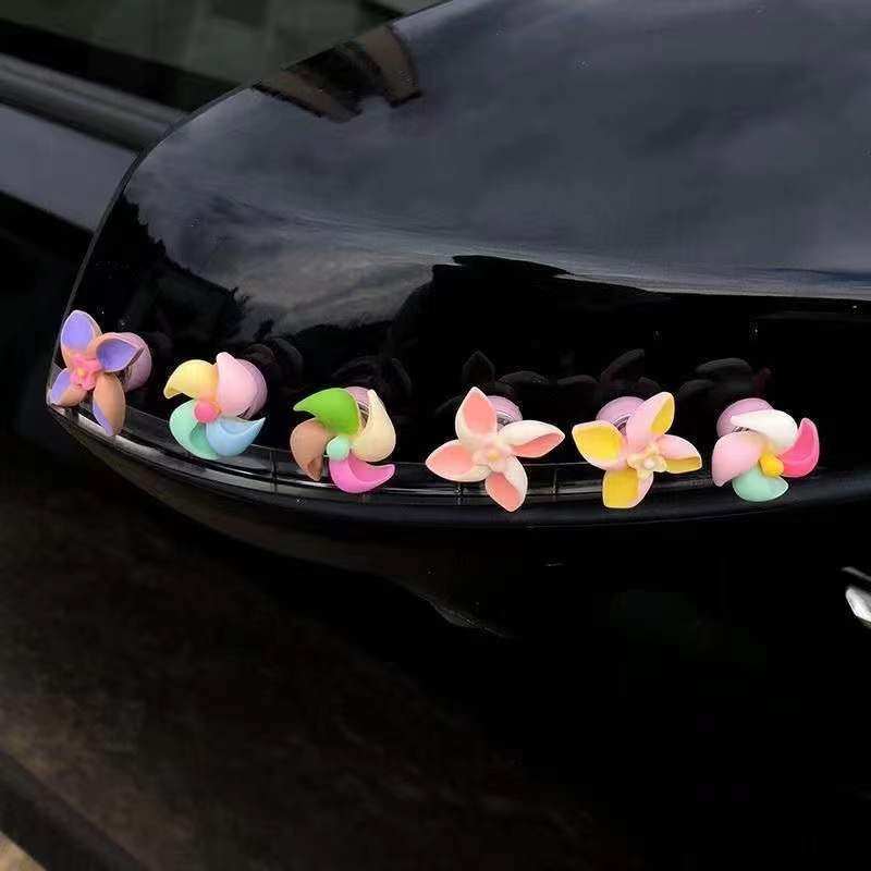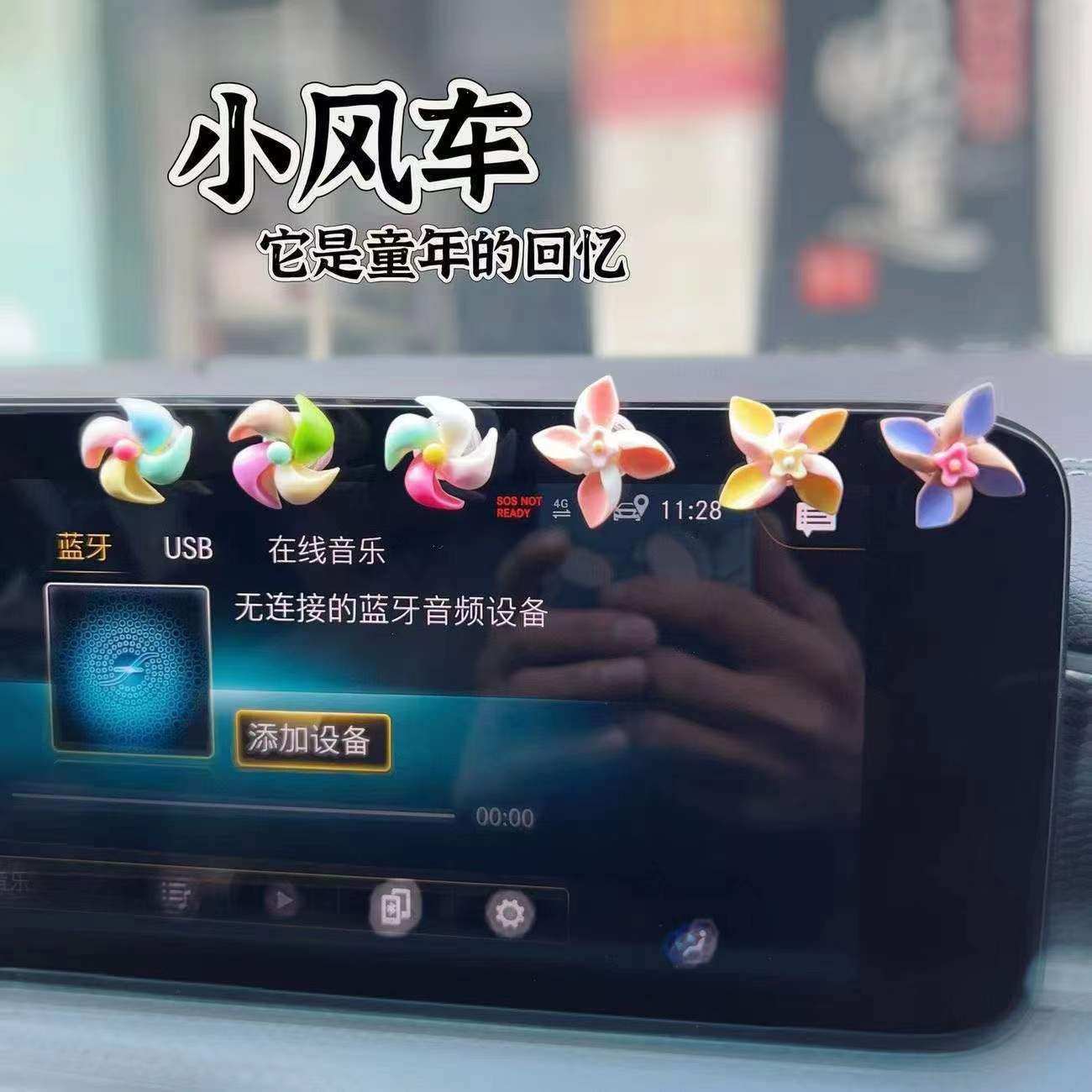 车载新款小风车旋转陀螺创意装饰贴小摆件中控台车内饰品女士可爱