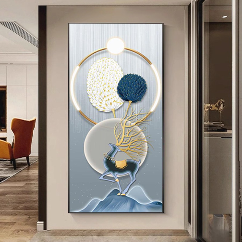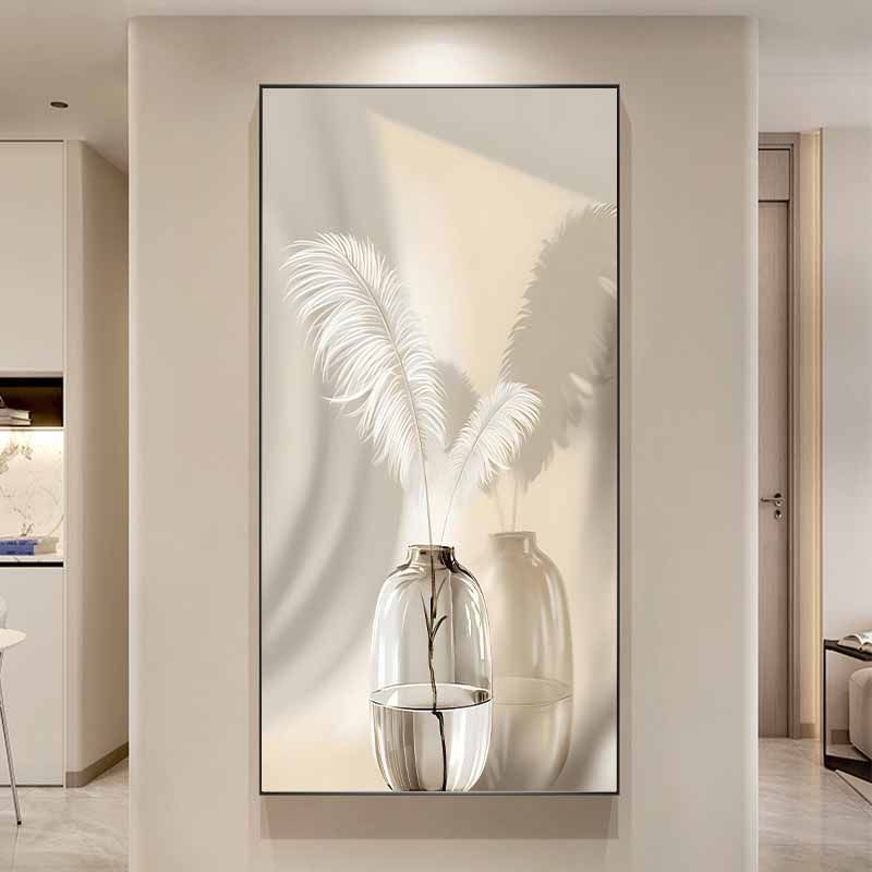 轻奢入户羽毛玄关装饰画客厅走廊过道挂画新款竖版墙壁画框画感应