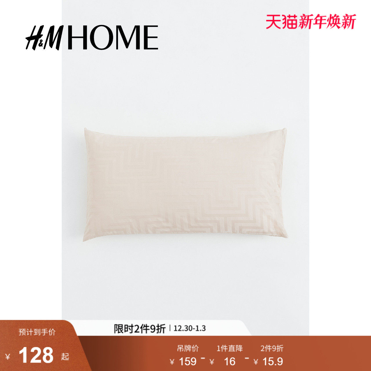 HM HOME家居床上用品单人枕套提花光泽感舒适棉缎柔软纯棉1134877