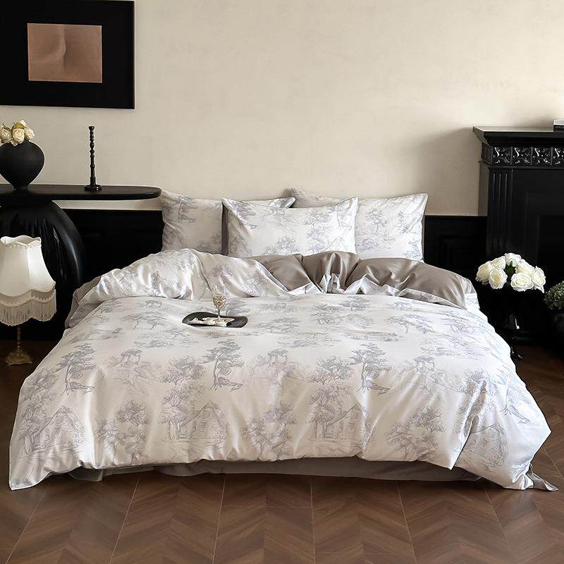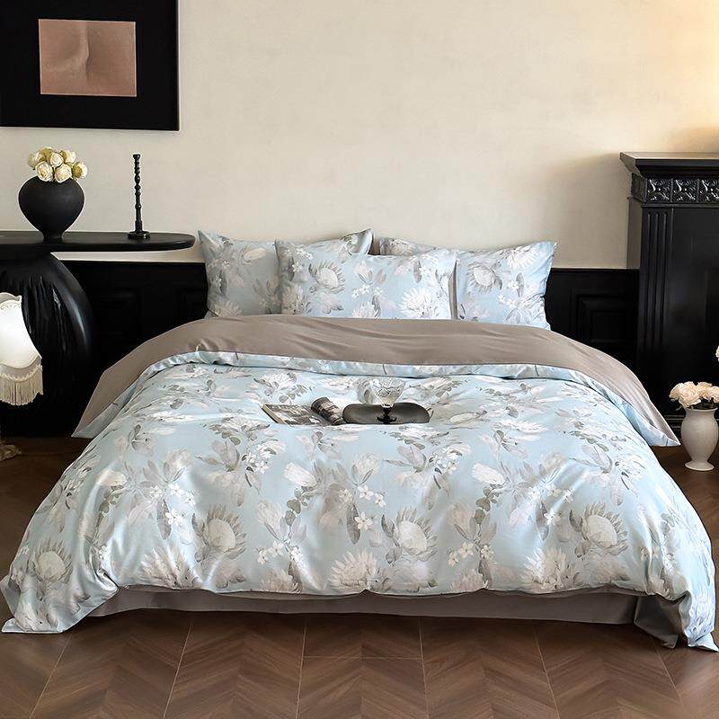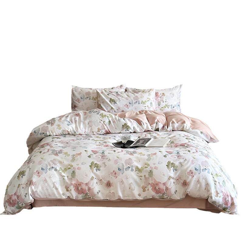 新中式田园花卉60支天丝棉磨毛数码印花被套家用1.8m床上用品套件