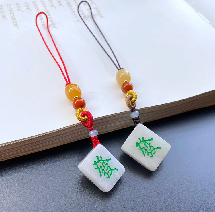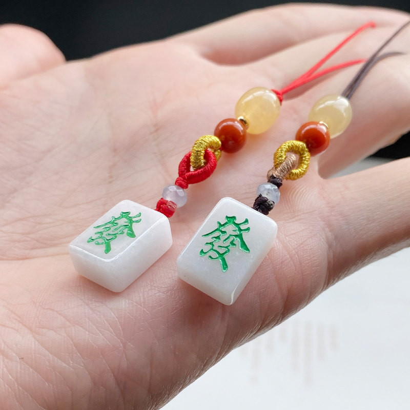 玉石翡翠迷你款麻将发财红中白板手机挂件创意礼物包包小巧挂饰