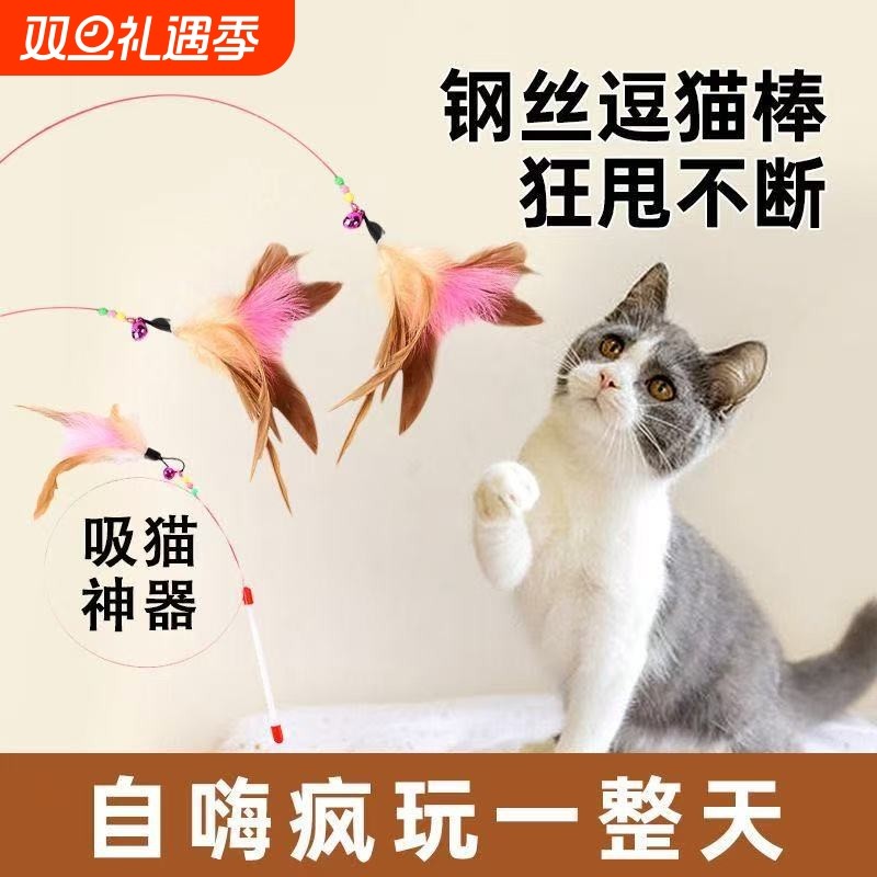 逗猫棒猫玩具羽毛加长钢丝杆高弹力爱宠互动自嗨解闷小玩具神器