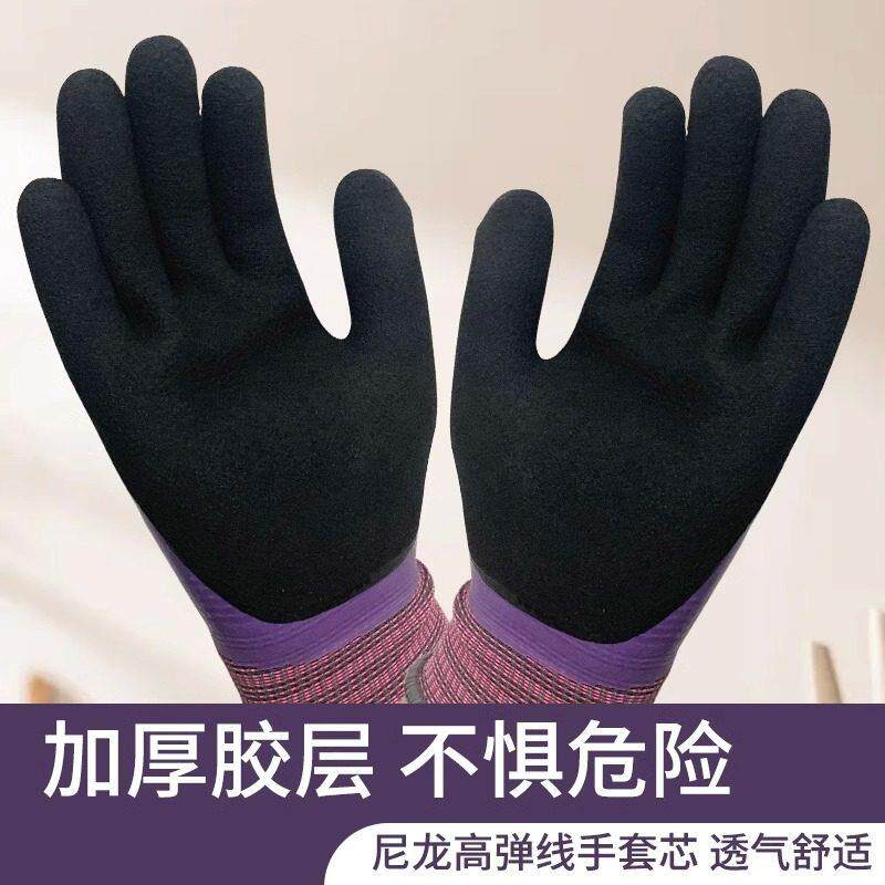 手套劳保手套乳胶橡胶手套工作劳保防滑防水耐磨胶皮手套工地干活