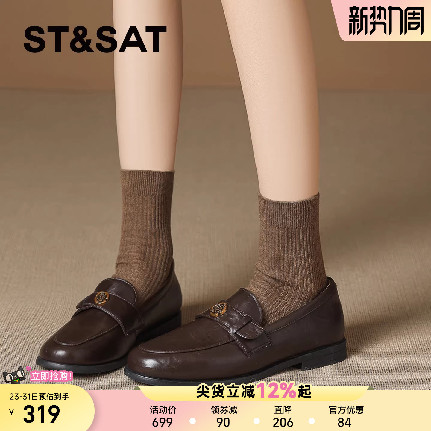 星期六老钱风乐福鞋女2026新款春季英伦风圆头皮鞋低跟一脚蹬单鞋