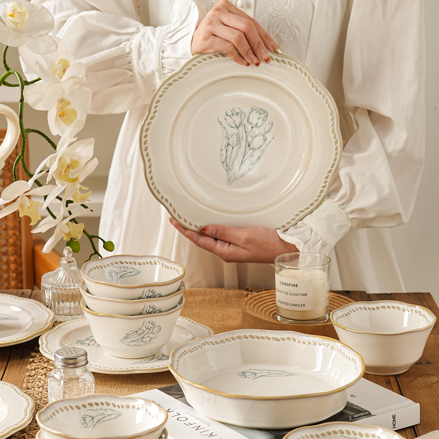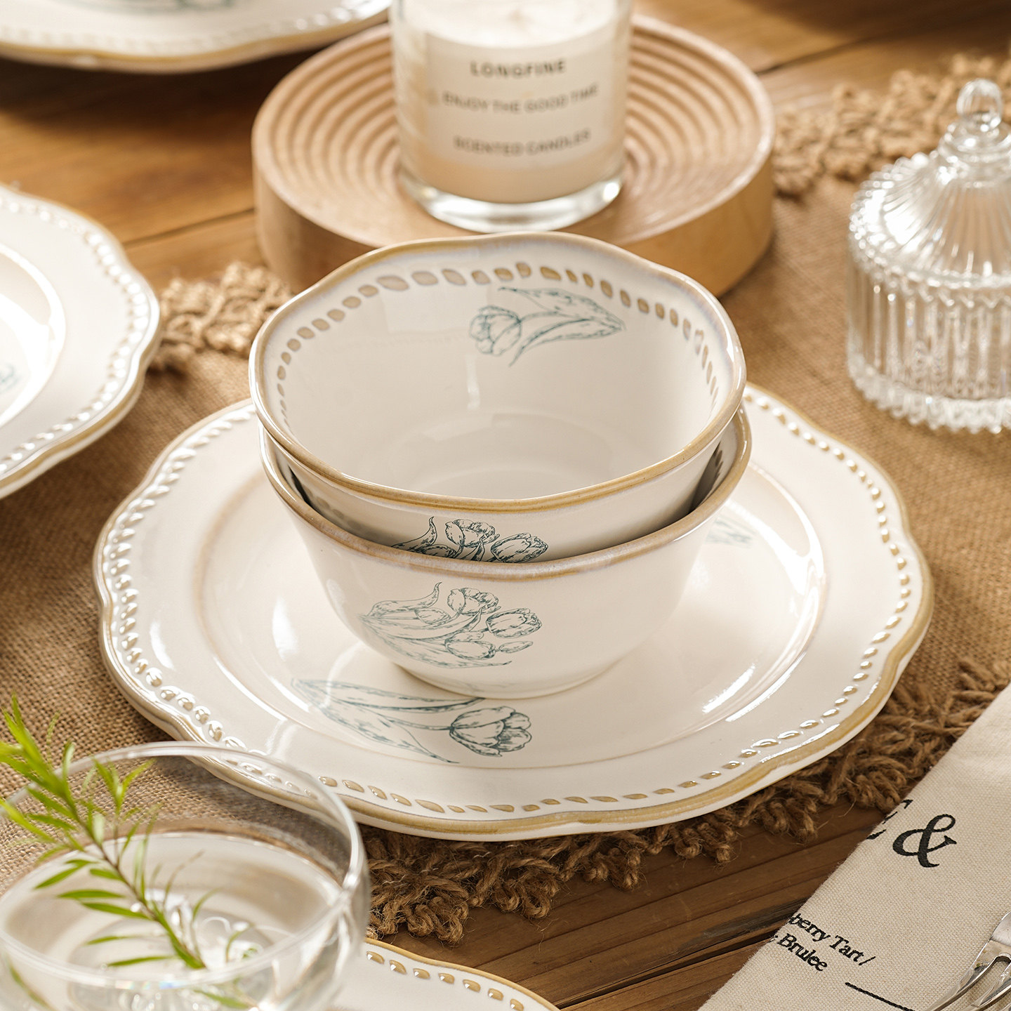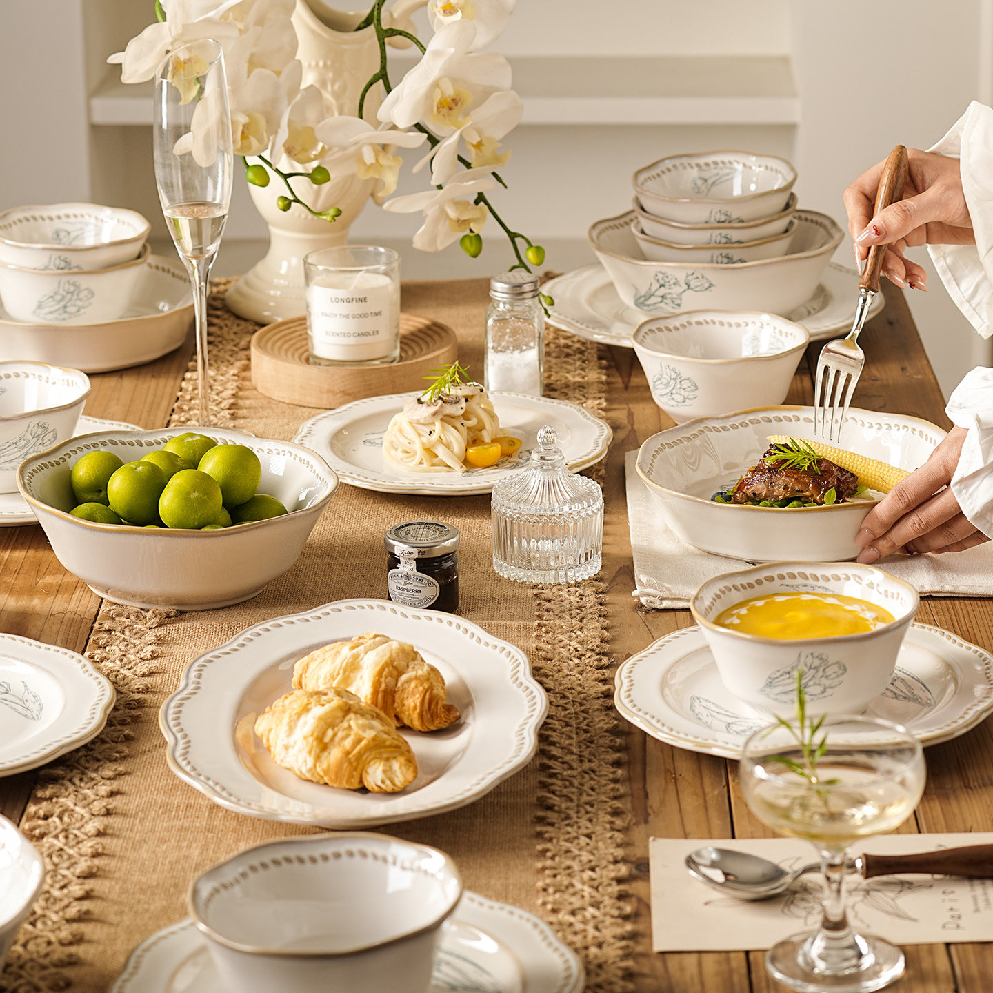 复古清新高级感陶瓷碗碟碗盘餐具套装家用2025新款高颜值乔迁新居