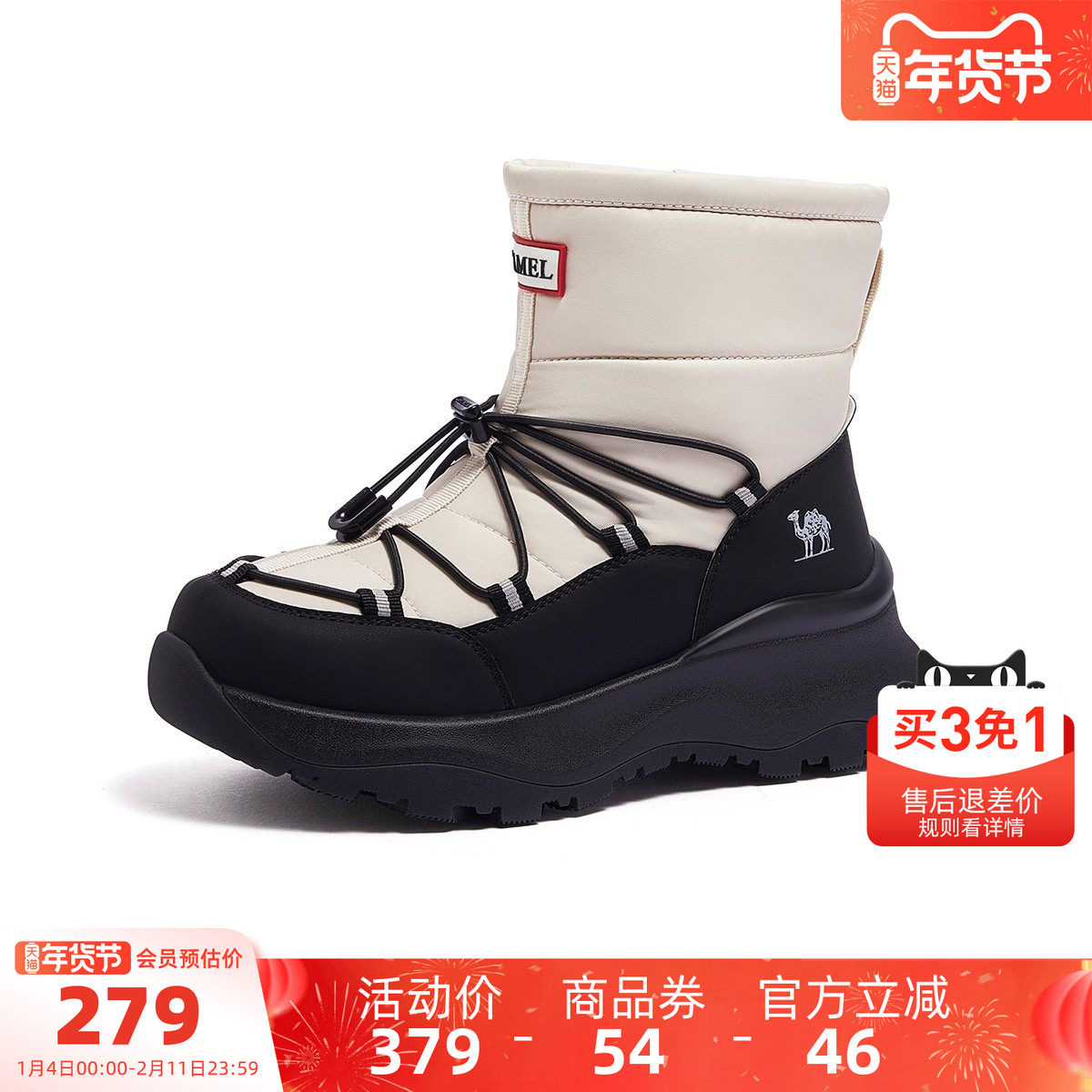 骆驼女鞋2025冬季新款雪地靴加绒保暖百搭显高厚底户外休闲女靴
