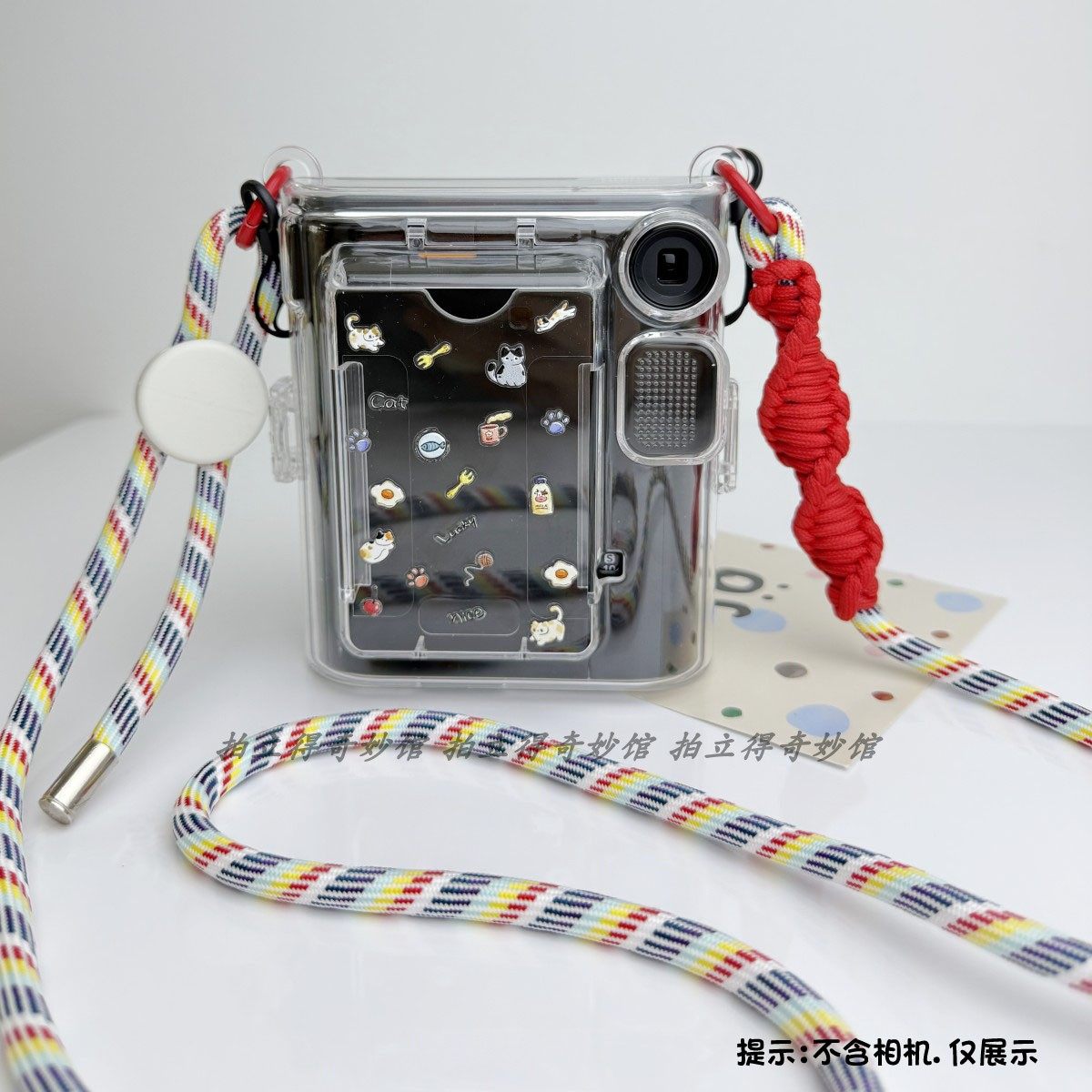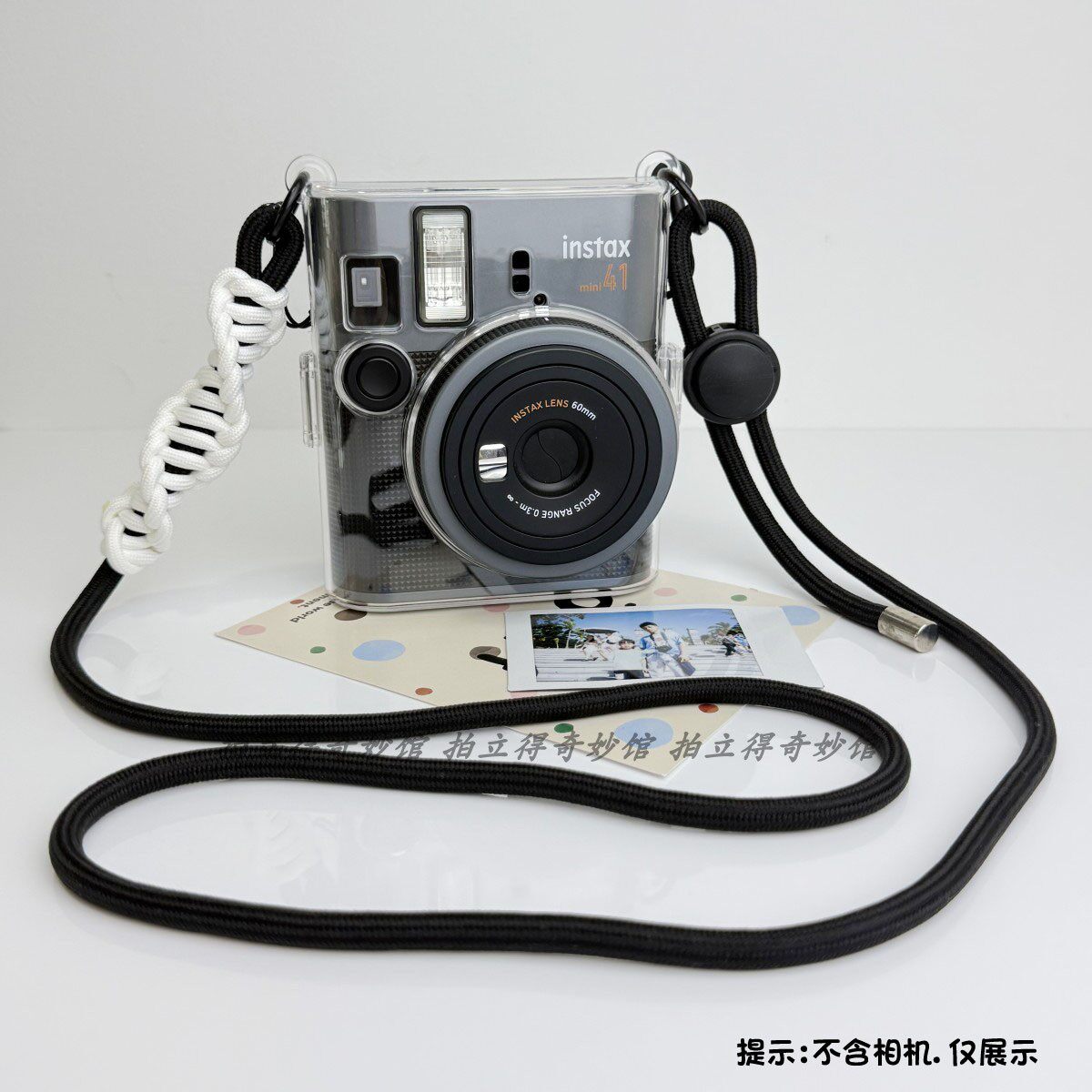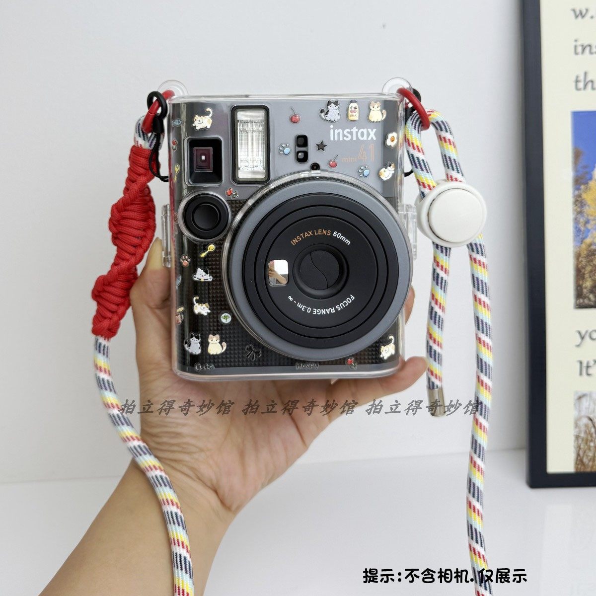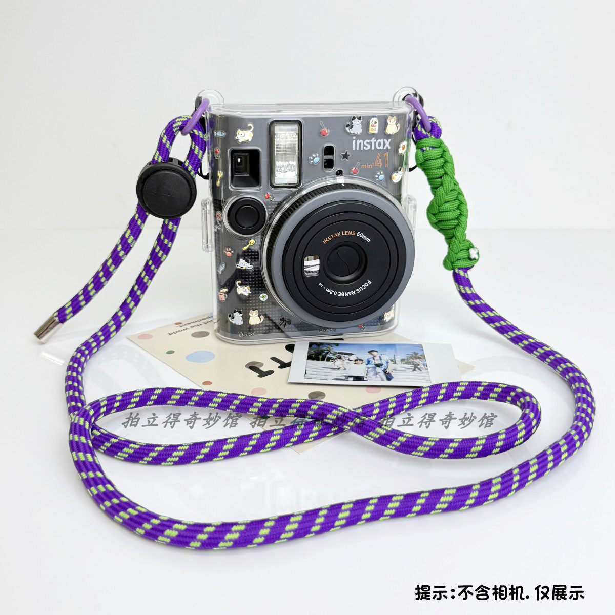富士拍立得mini41相机透明保护壳套 彩纹斜挎背带 硅胶套合身皮包