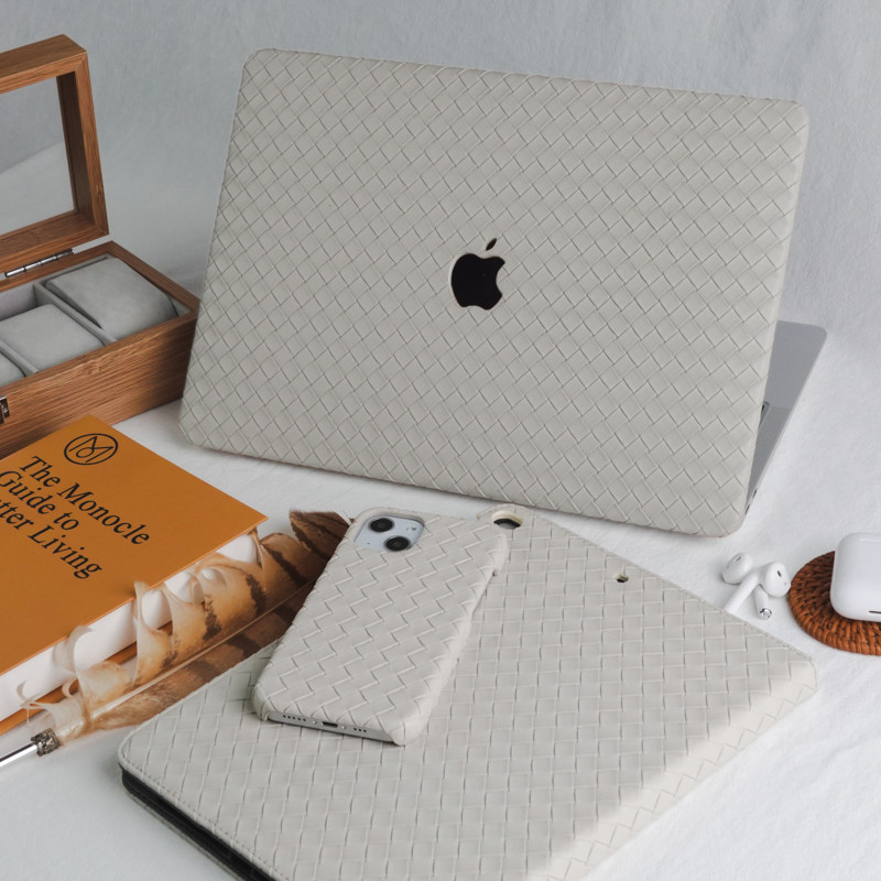 古董白编织纹手机壳磁吸充电适用于13Pro/11保护套/12promax防摔