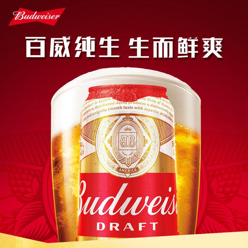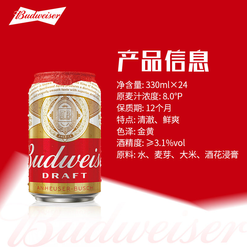 百威纯生啤酒330ml*24听经典易拉罐装拉格8度啤酒整箱装
