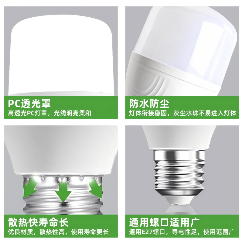 led灯泡超亮节能灯白光家用省电E27大螺口客厅室内灯照明圆柱形灯