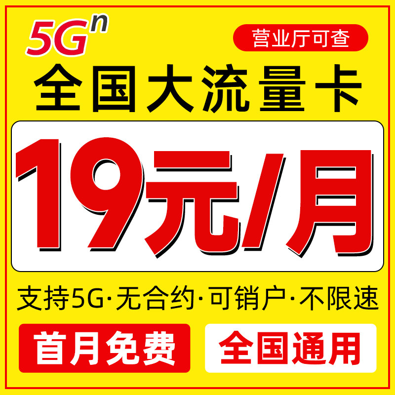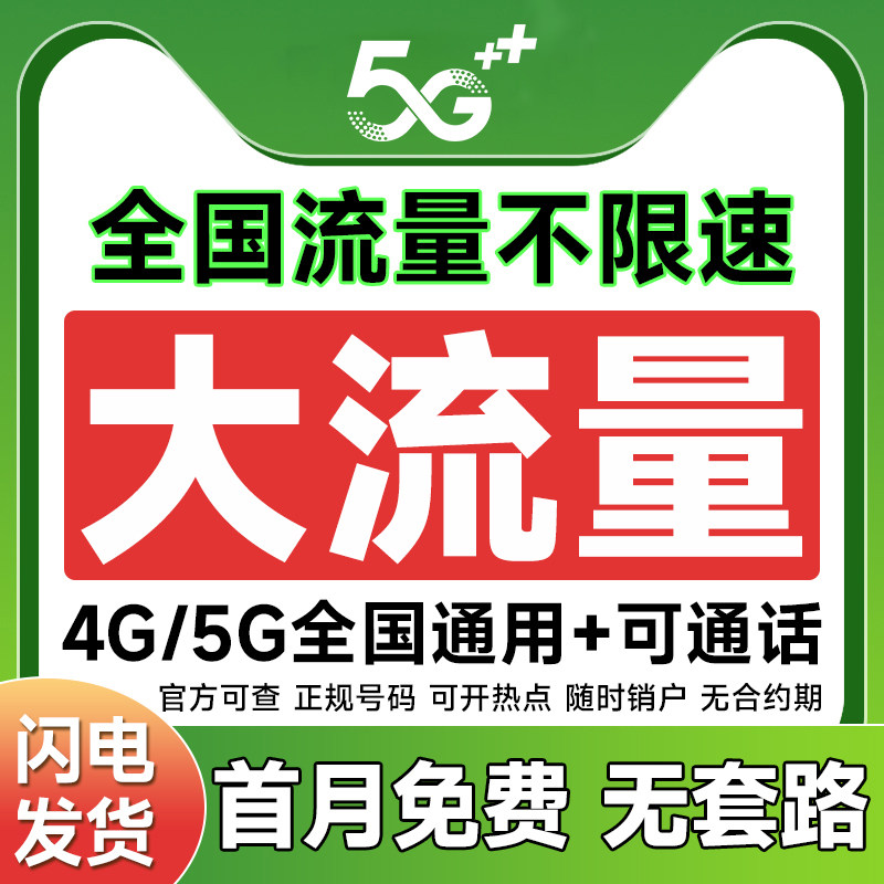 中国流量卡纯流量上网卡5G无线限量全国通用大流量卡手机卡电话卡