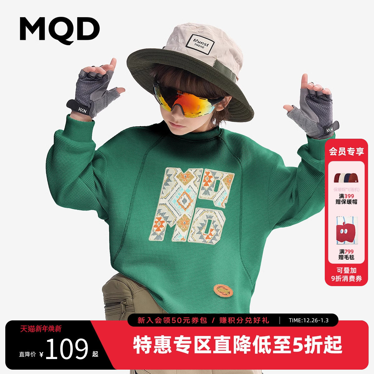 MQD童装男童卫衣春秋款宝宝春装打底衫儿童华夫格长袖T恤外套