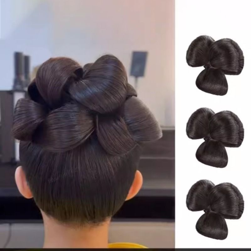 儿童汉服假发一体式古风盘发发髻女童蝴蝶结发包古装头饰垫发造型