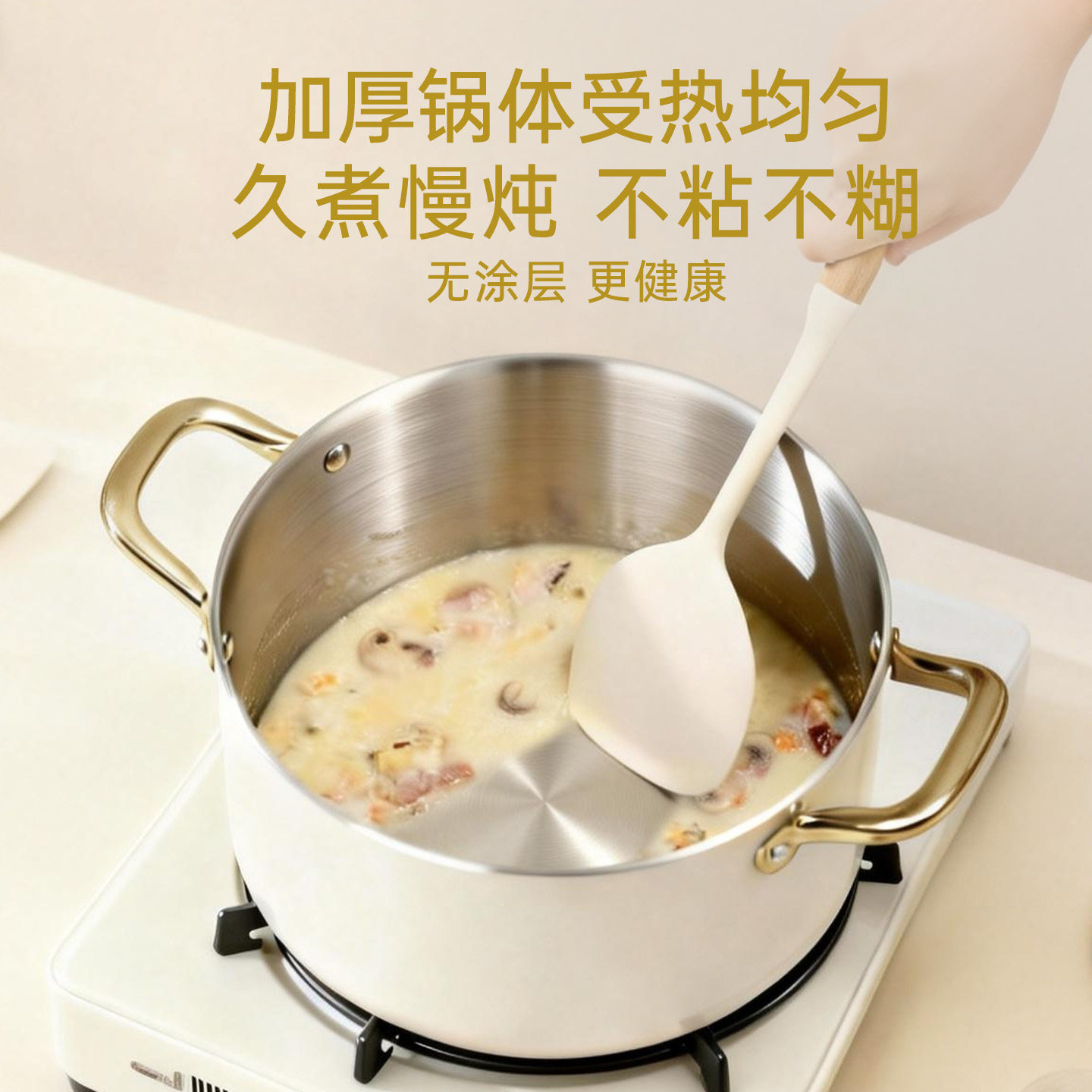 内不锈钢外陶瓷 无涂层 大容量蒸煮一体