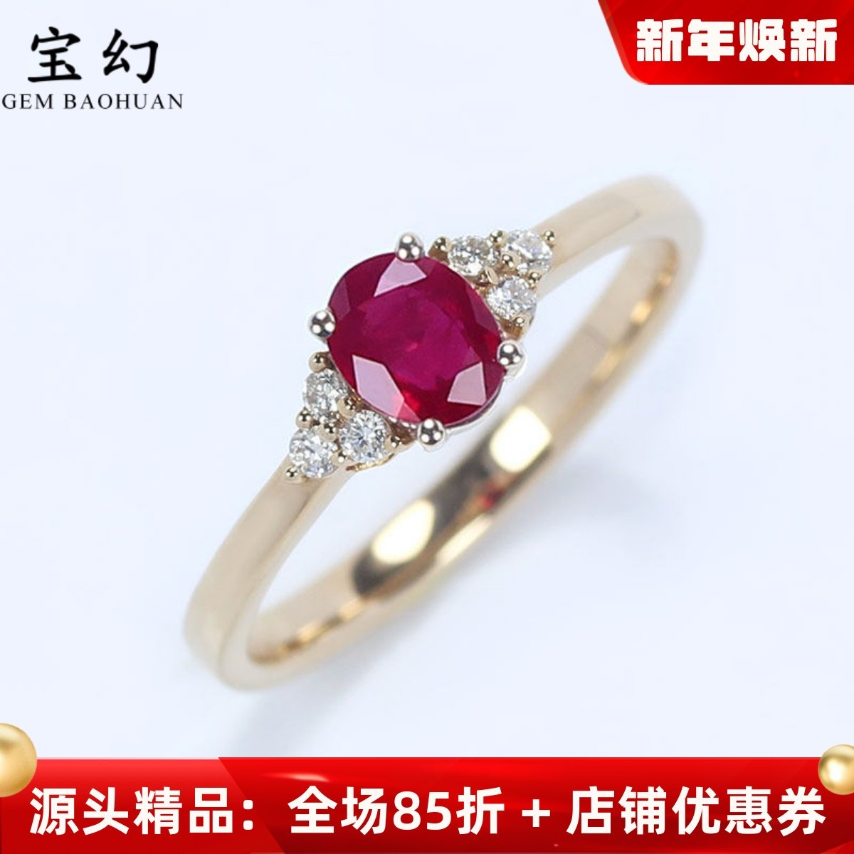 18K玫瑰金天然鸽血红宝石三生石款戒指 正红色镶钻石简约手饰正品
