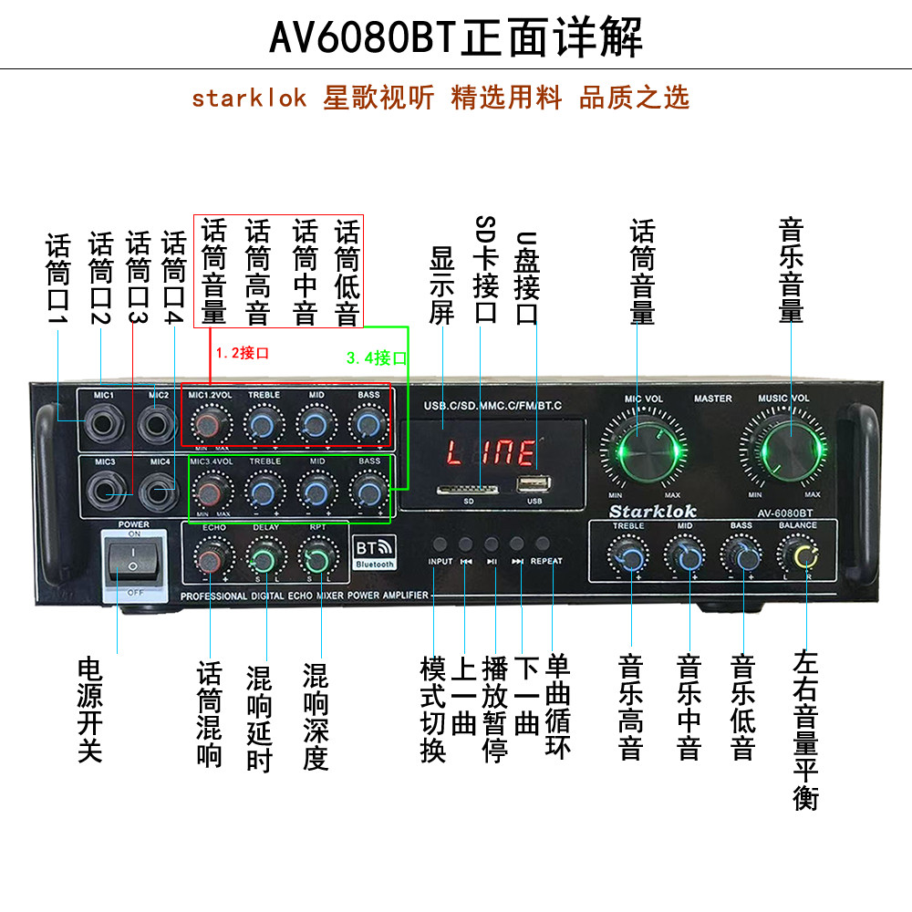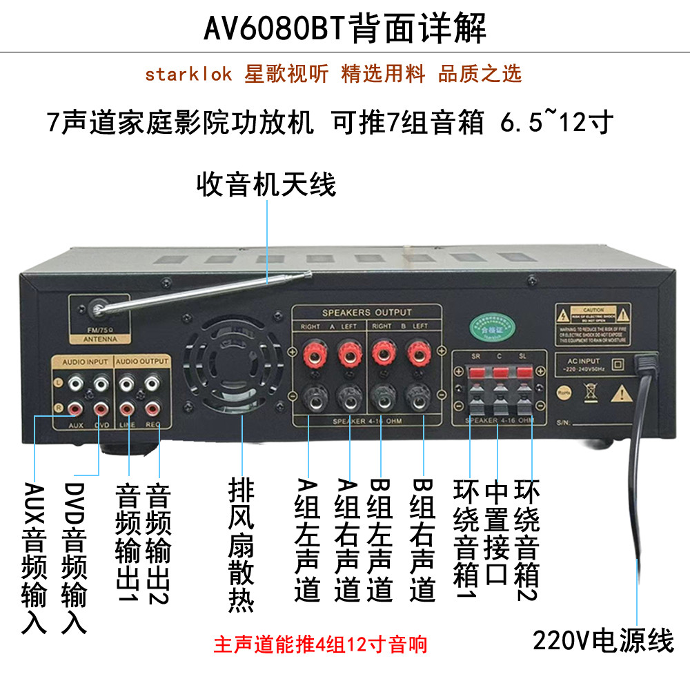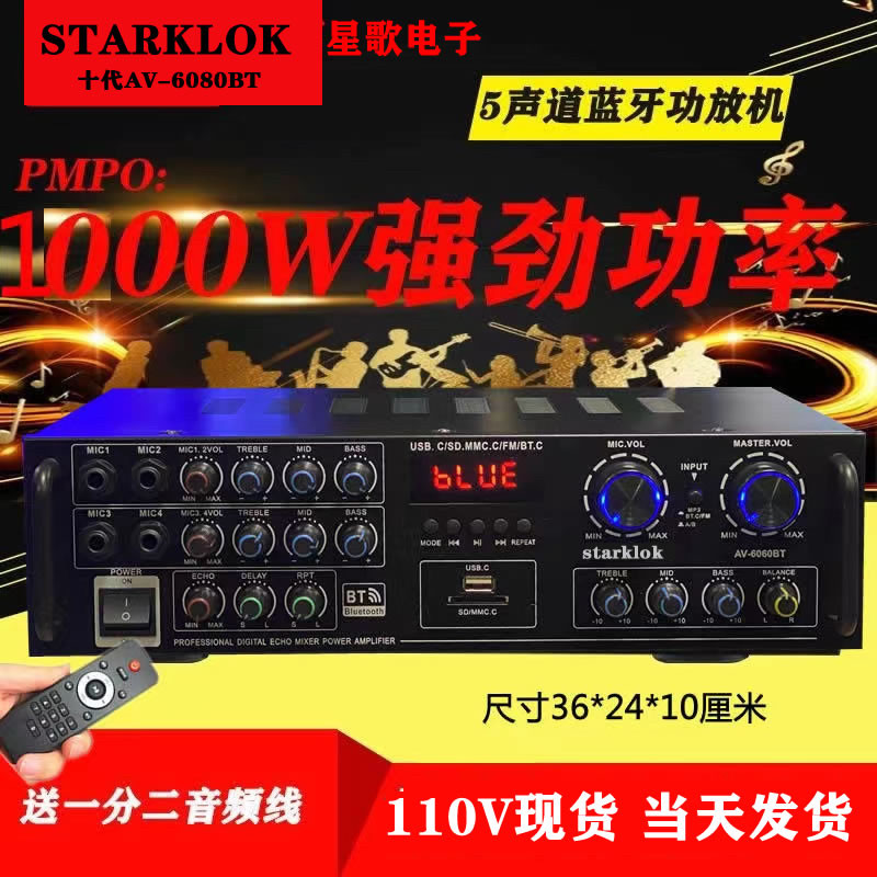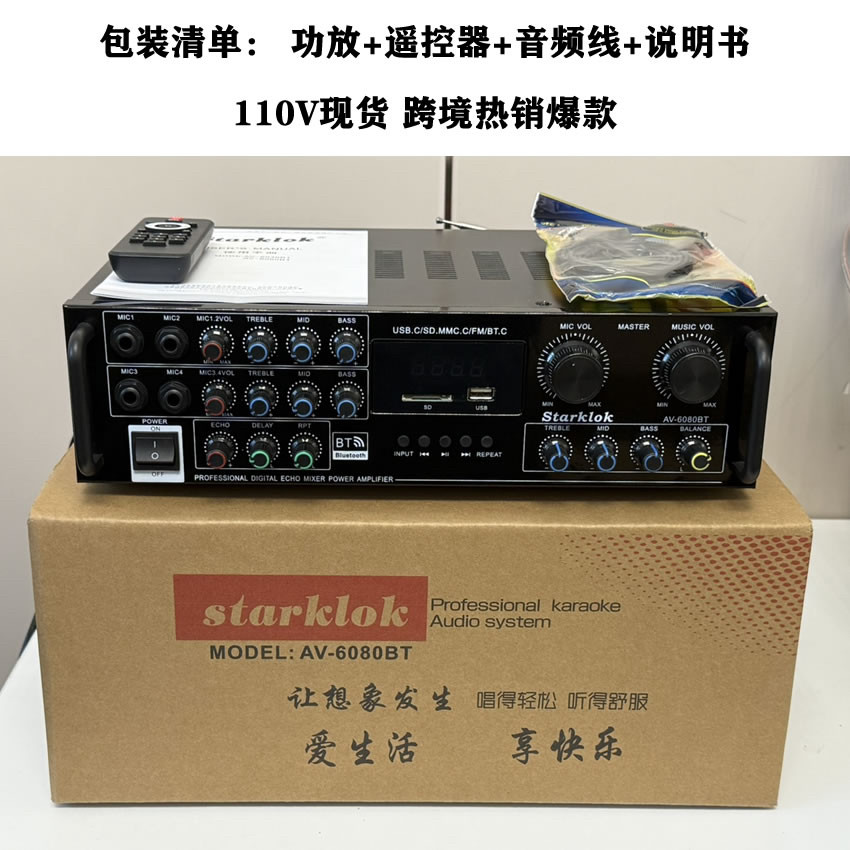110V跨境热销AV6060B五声道5家用蓝牙功放机600W大功率铝合金功放