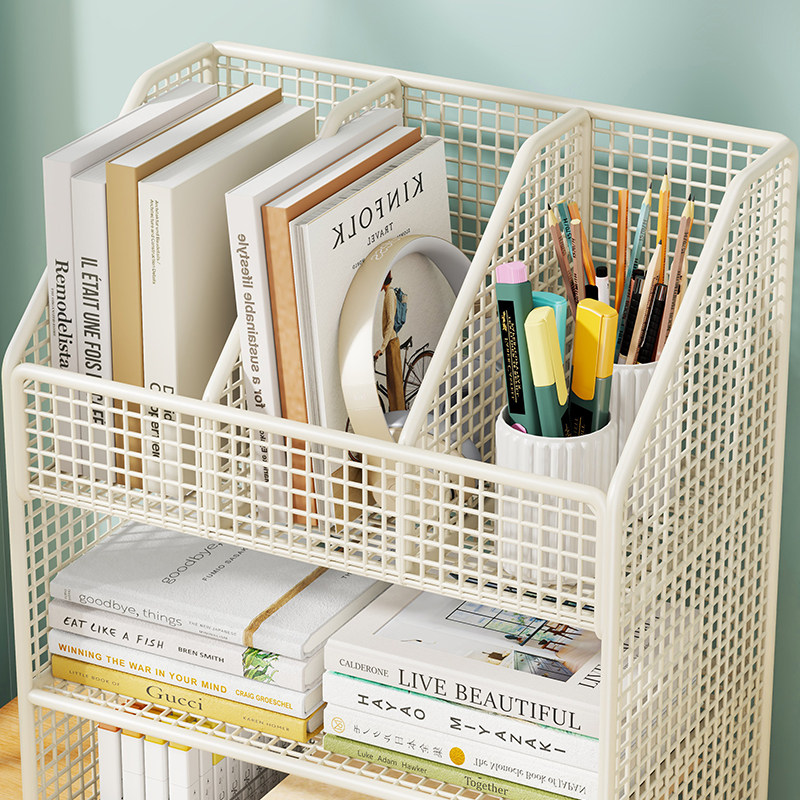 书架收纳架书桌下多层小书柜桌边简易带轮可移动小推车落地办公桌
