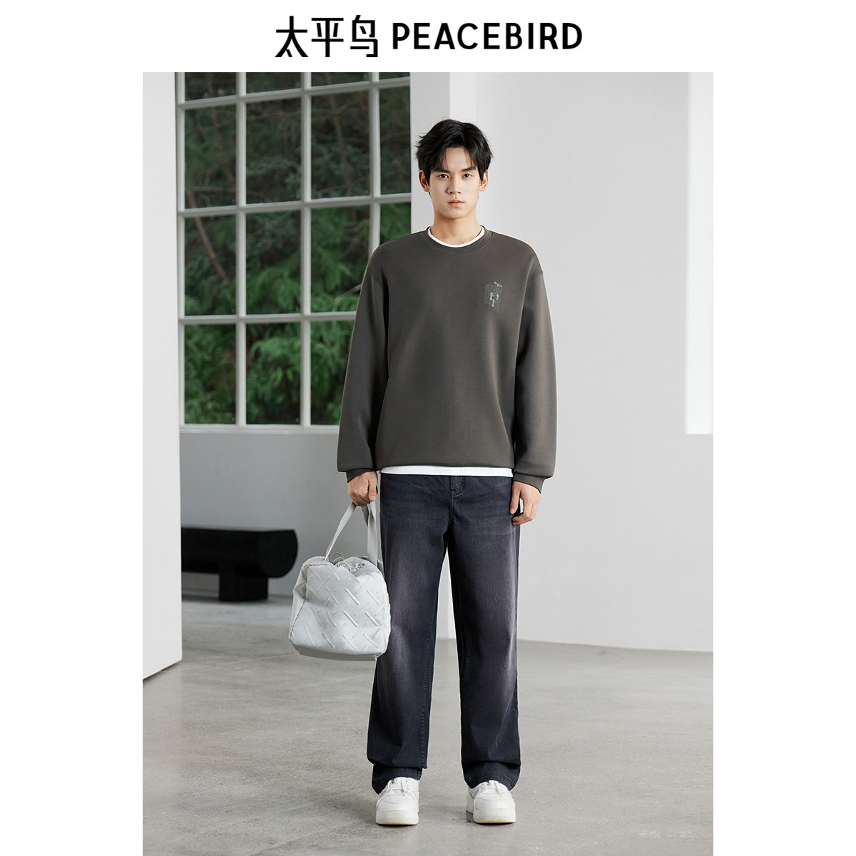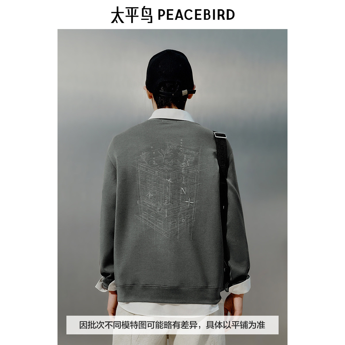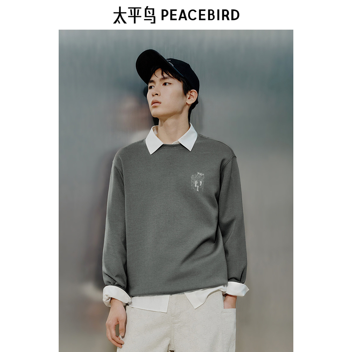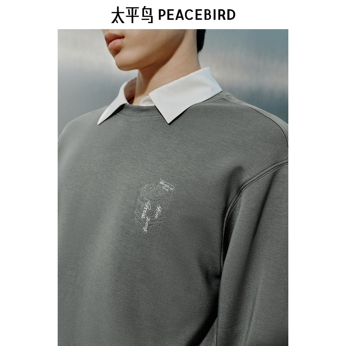 太平鸟男装 休闲卫衣男士时尚经典卫衣莫代尔空气层刺绣卫衣上衣