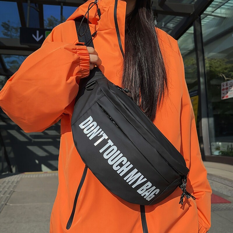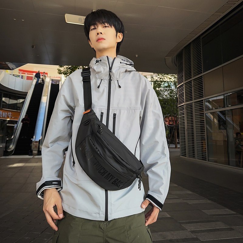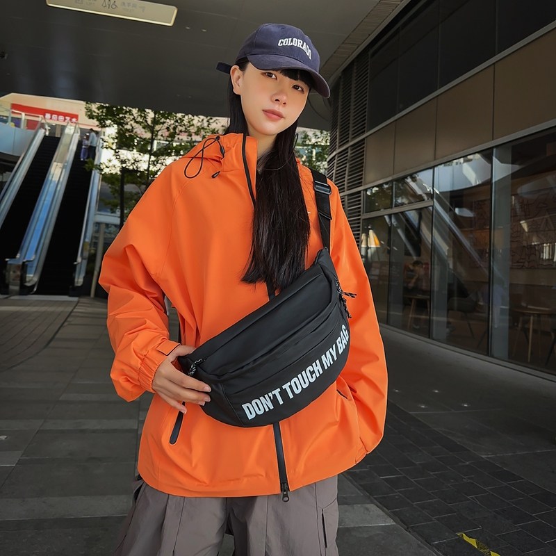 男士通勤斜挎包字母印花设计感胸包工装机车骑行包潮牌运动腰包女