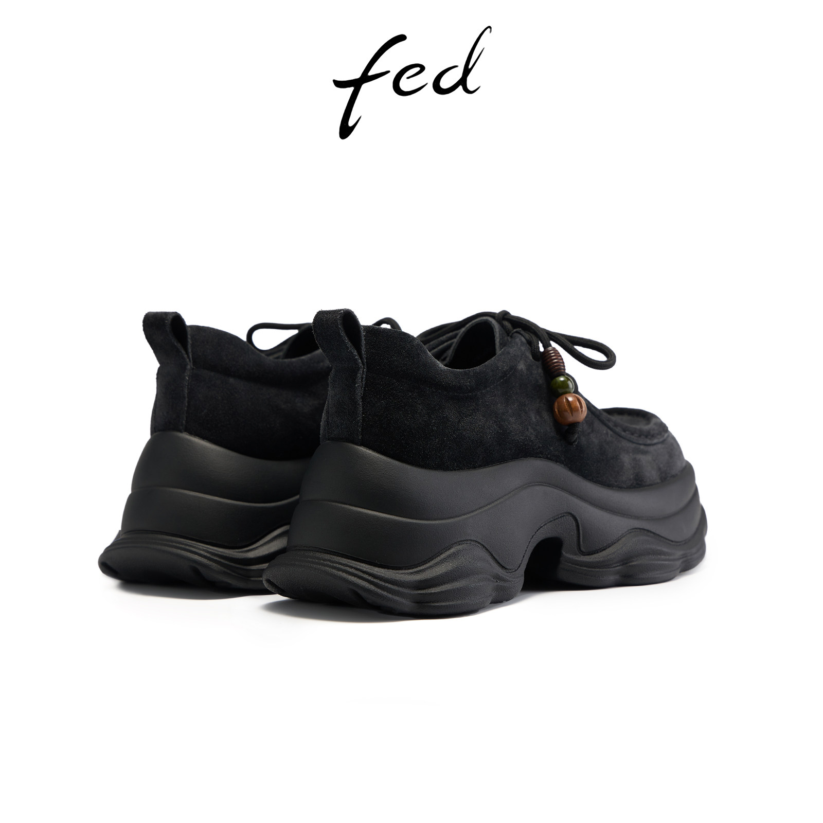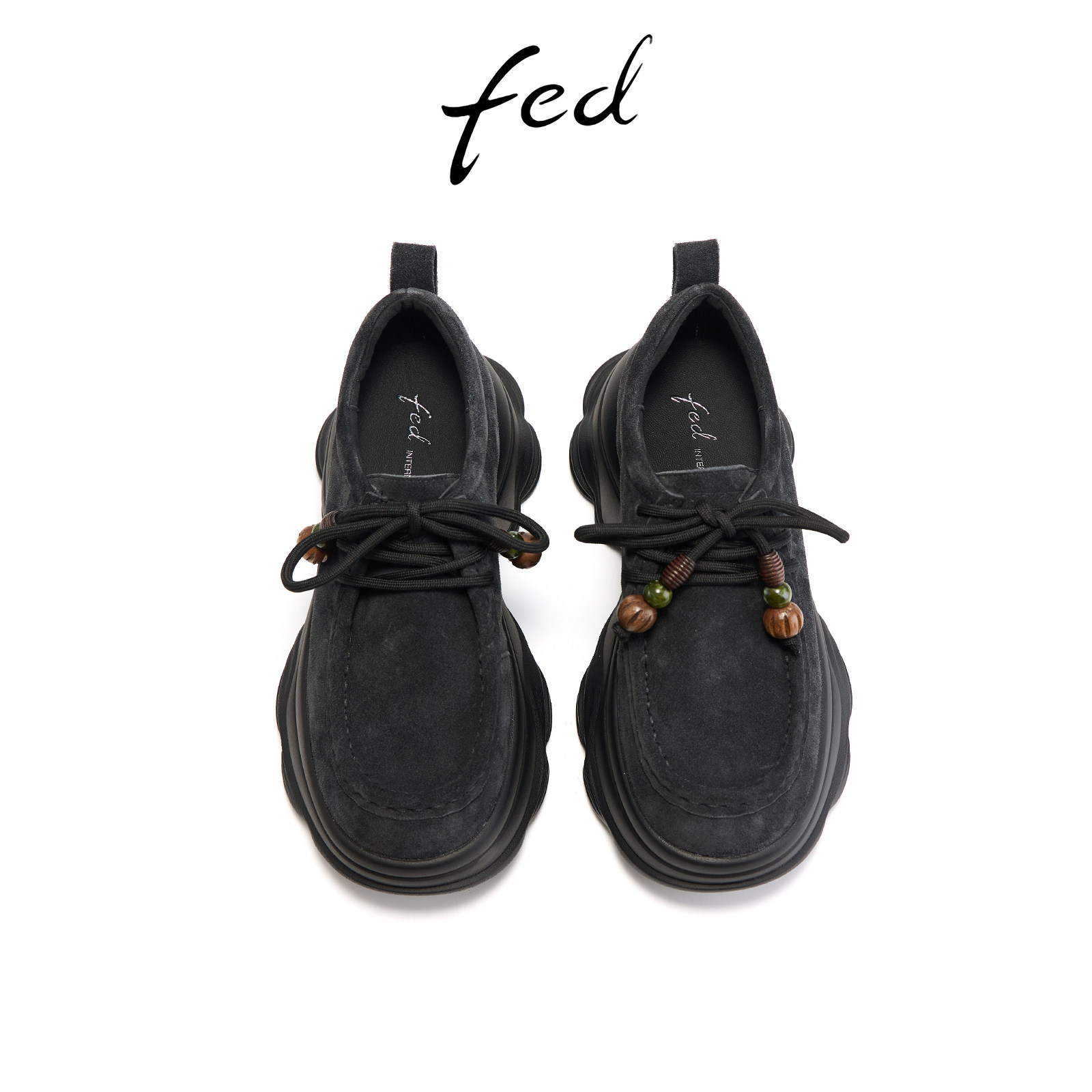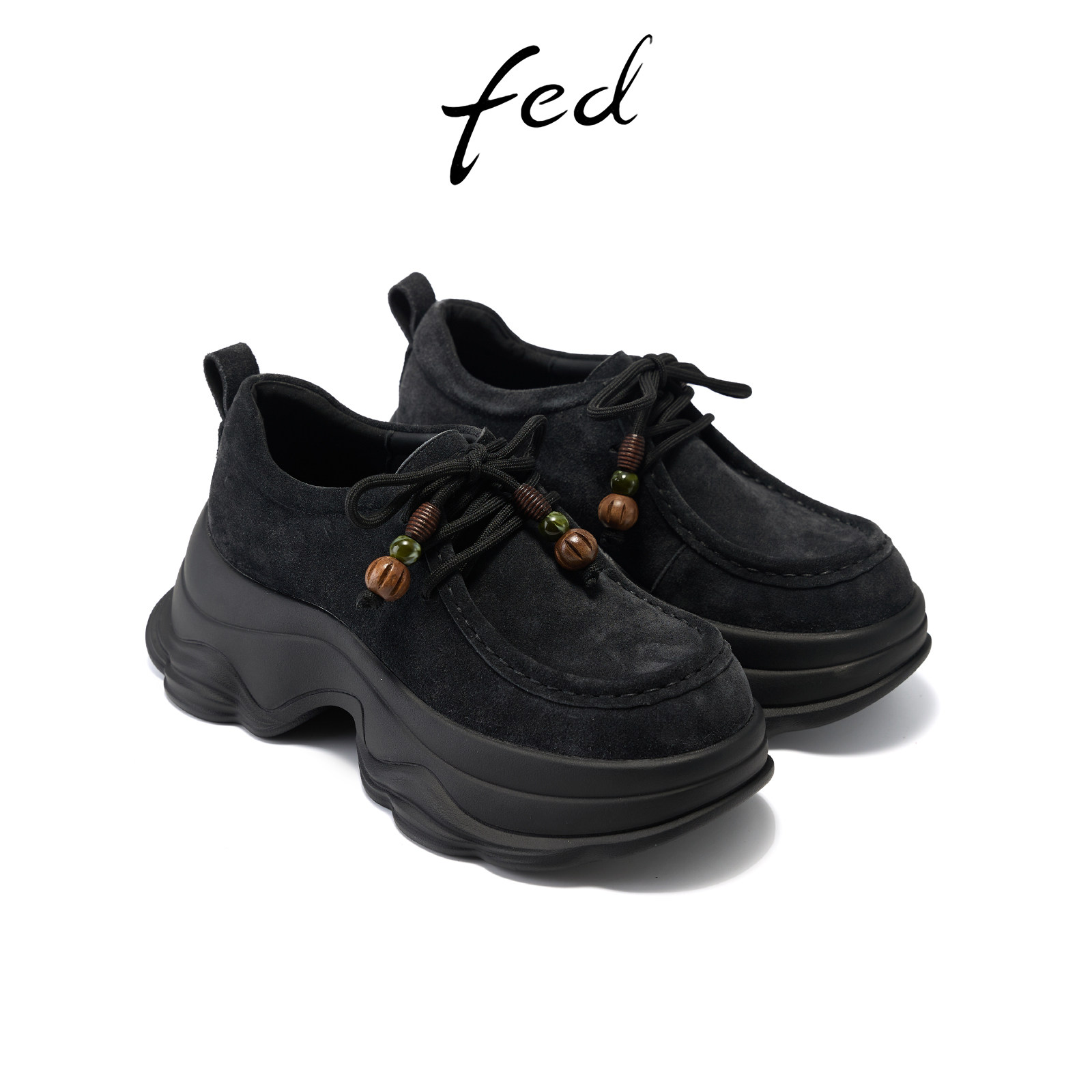 fed厚底小皮鞋秋季新款女鞋圆头深口单鞋串珠乐福鞋女S0812-YA696