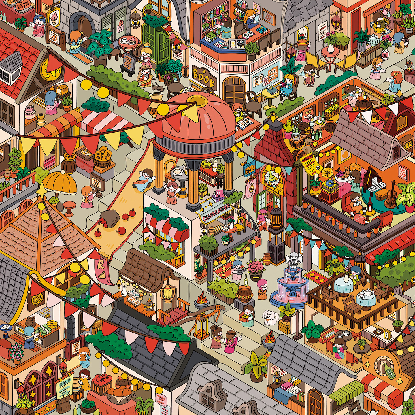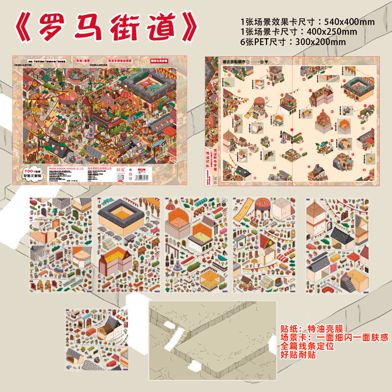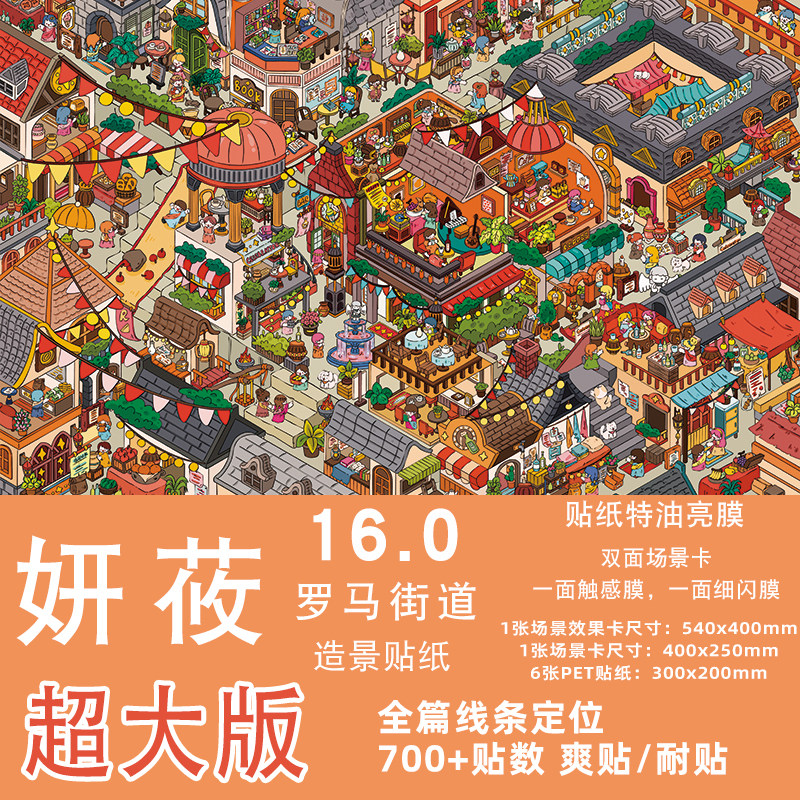 妍莜16.0罗马街道超大版造景贴纸特油亮膜微缩场景合集本3D立体小屋贴画手帐账手工diy儿童玩具女孩打发时间