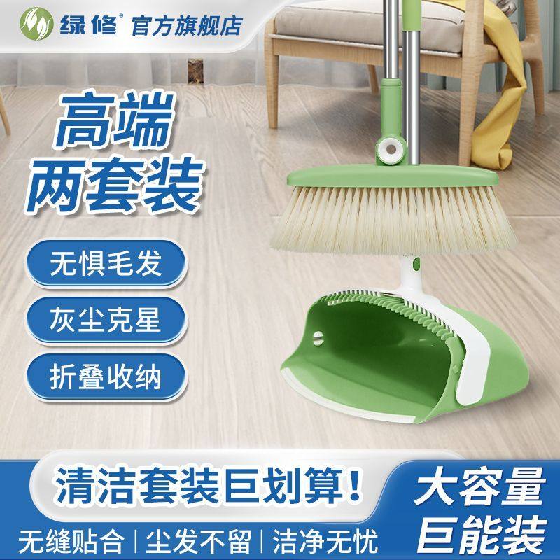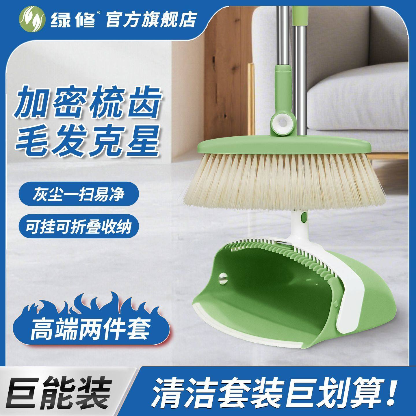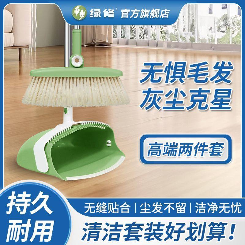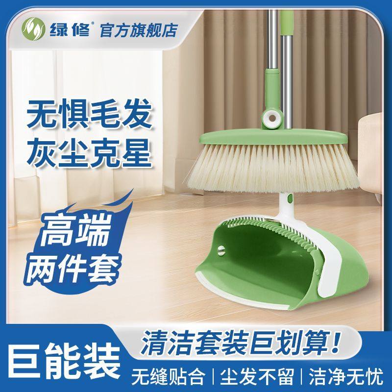 绿修扫把套装不粘毛扫帚簸箕组合软毛笤帚头扫地神器家用清洁扫把