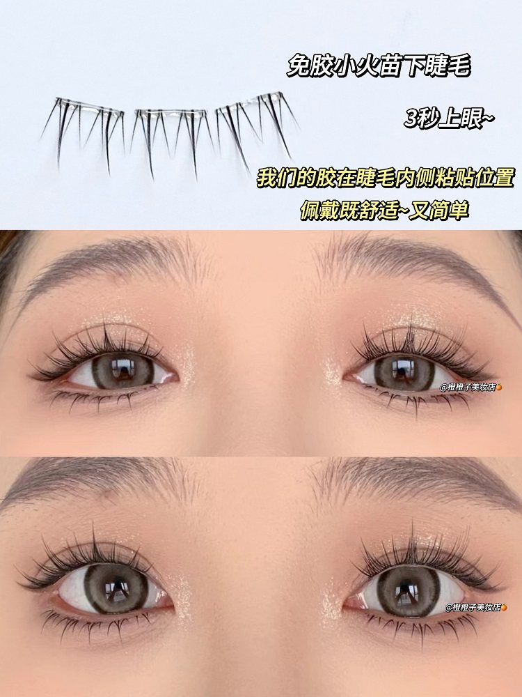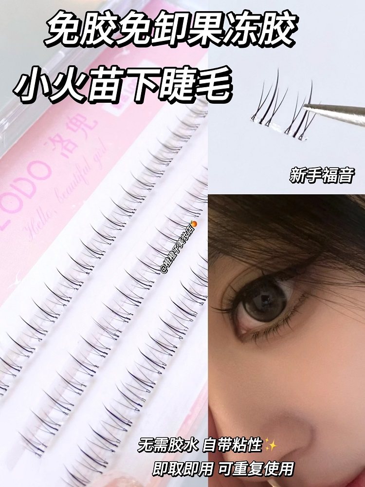 小火苗下睫毛免胶自粘!假睫毛自然仿真单簇嫁接懒人新手无需胶水