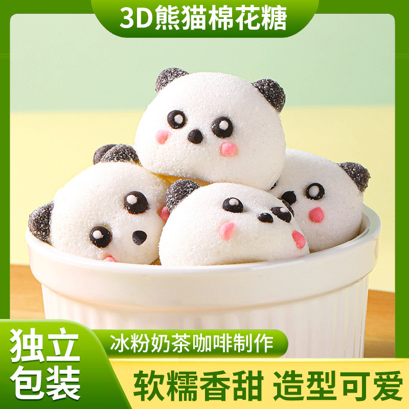 过年熊猫头棉花糖咖啡网红动物创意造型儿童糖果商用小熊猫烘焙