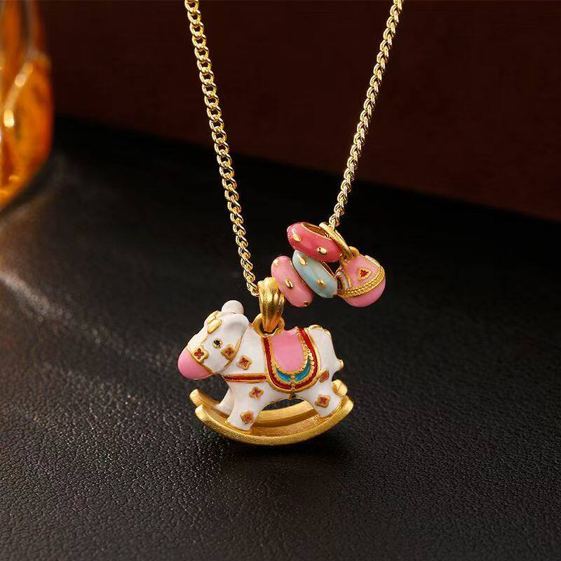 2026新款项链韦雪同款马卡龙色摇摇木马吊坠彩色锁骨链颈饰品
