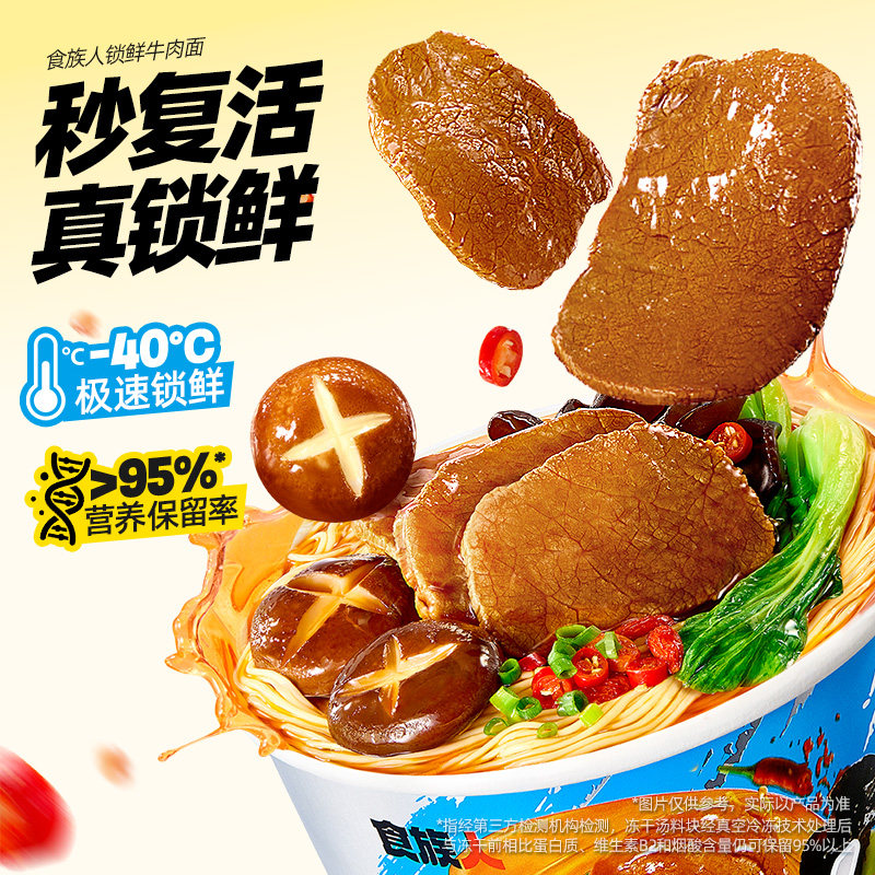 食族人锁鲜牛肉面冻干技术方便泡面夜宵拉面桶装非油炸宿舍夜宵