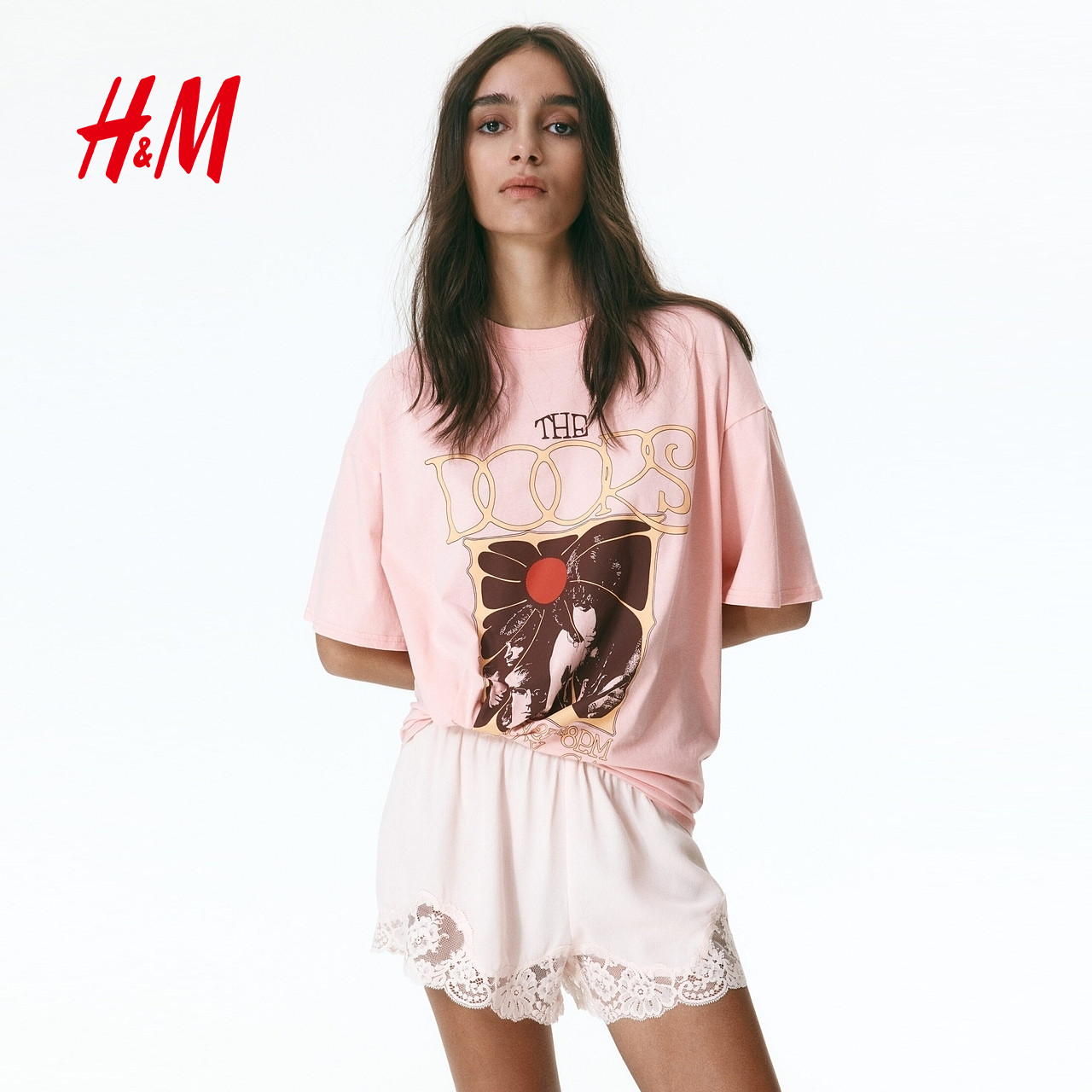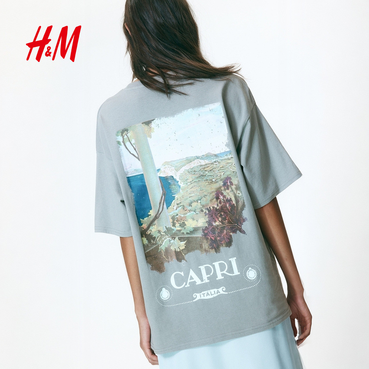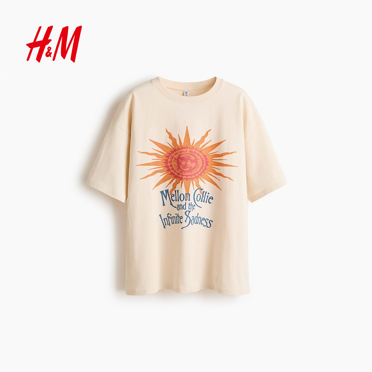HM女装T恤2026夏季新款做旧工艺印花图案大廓形短袖上衣1314589