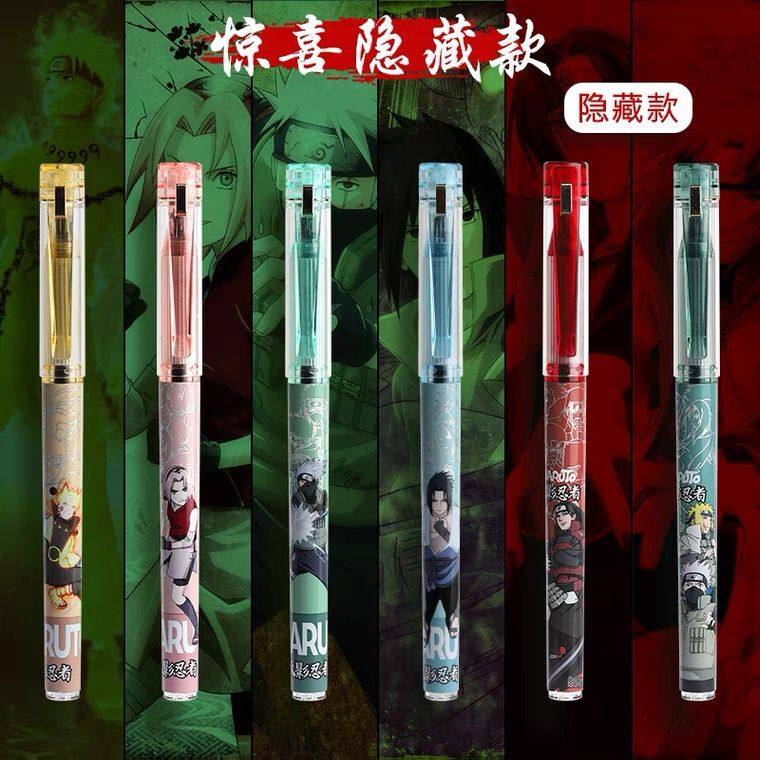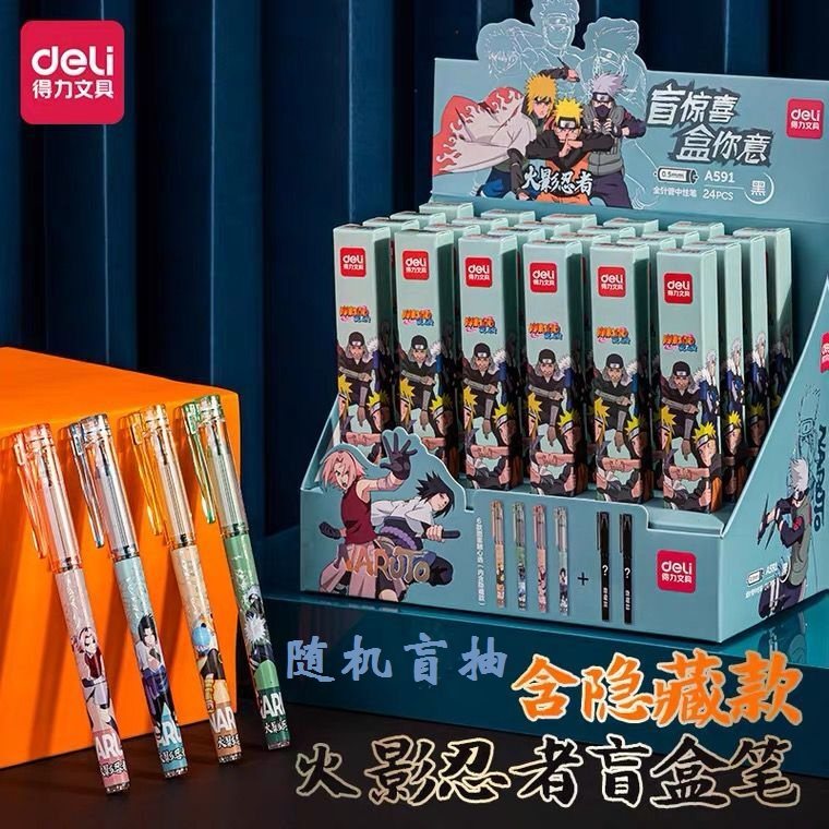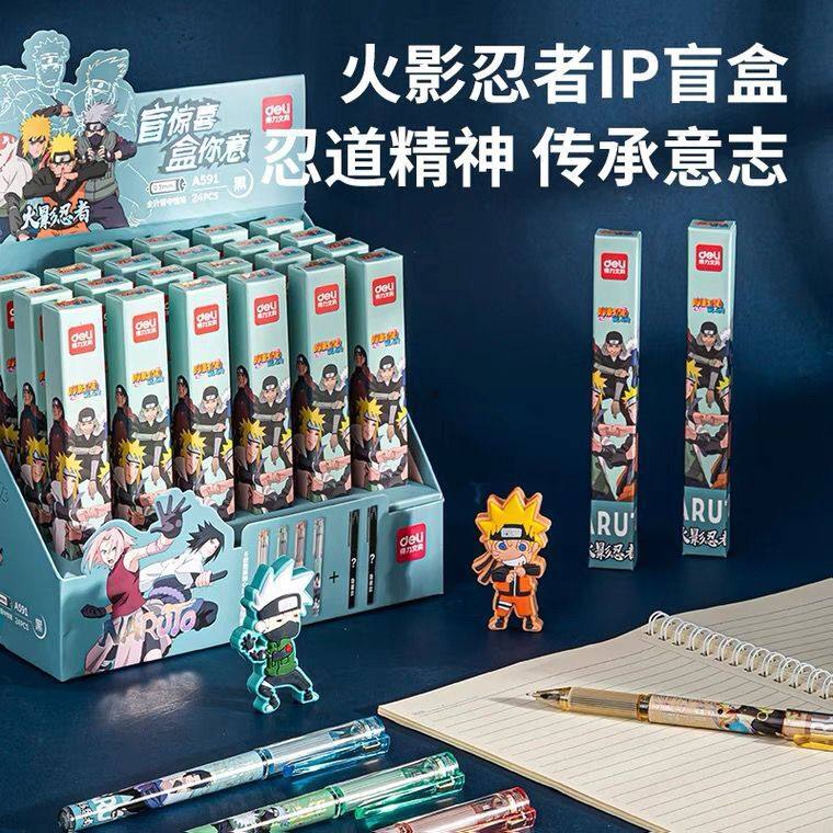 得力火影忍者中性笔0.5mm黑色高颜值热销榜限量版全针管可爱好用的初中生专用限定款小学生盲盒日本卡通写字