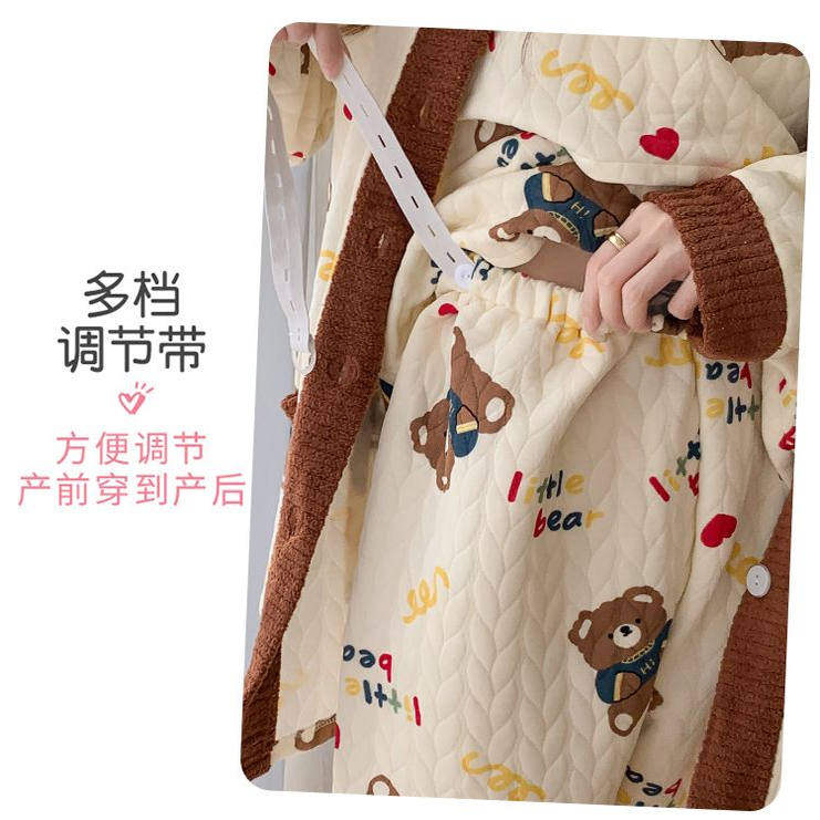 婧麒月子服秋冬孕妇睡衣产后十月份加厚哺乳产妇待产家居服三件套