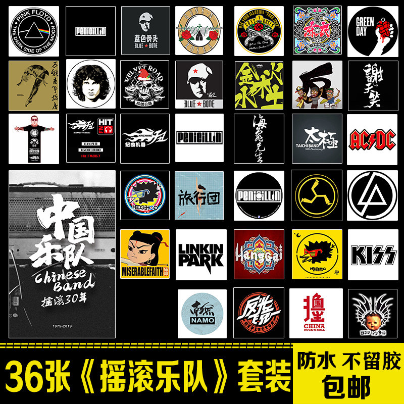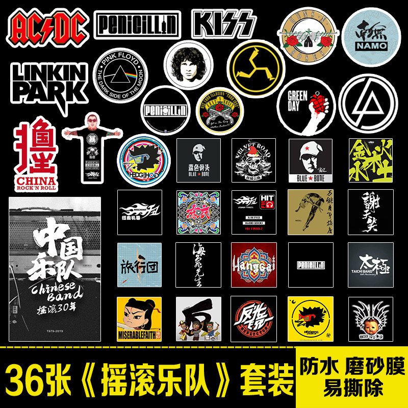 中国摇滚乐队民谣笔记本电脑手机拉杆箱电吉他覆膜磨砂面防水贴纸