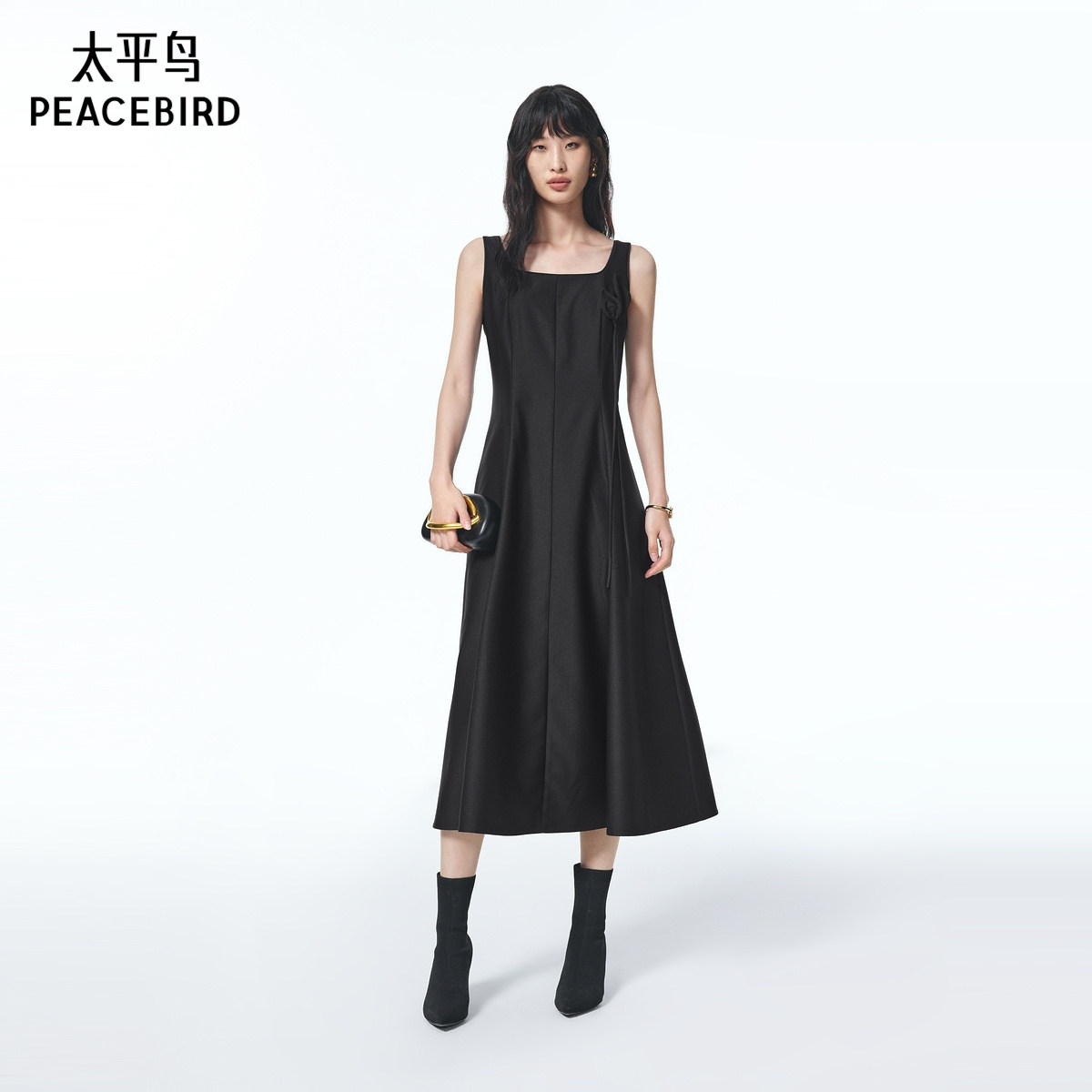 【商场同款】太平鸟大方得体宴会仪式感连衣裙女小黑裙A1FAF3514