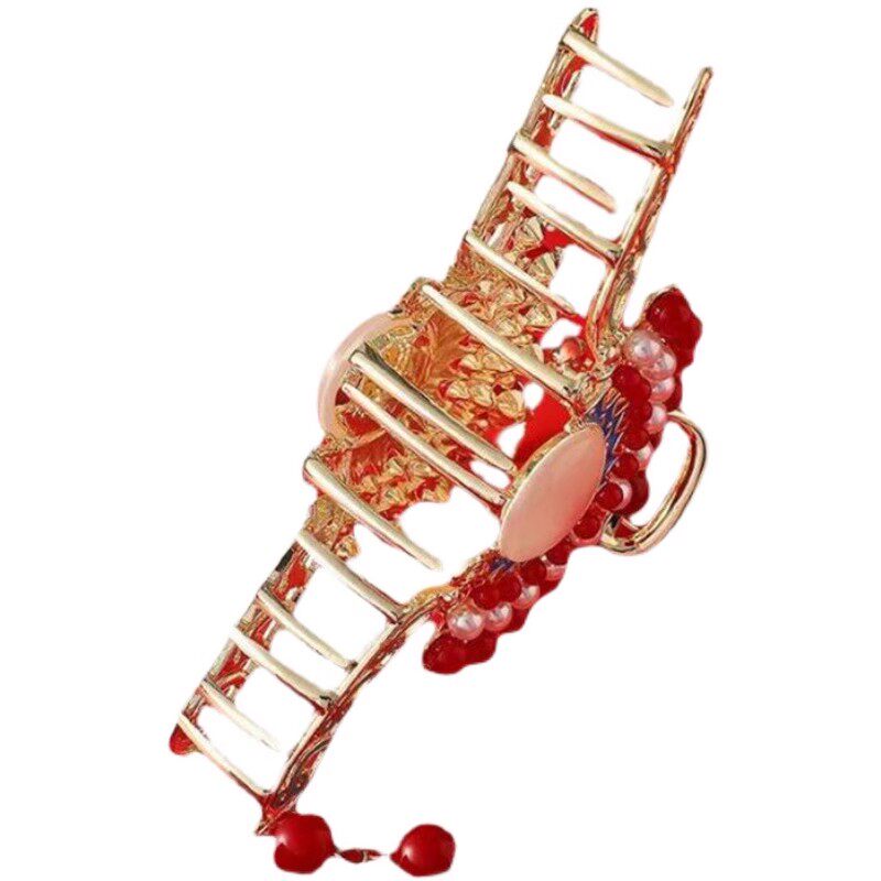 汉服旗袍金属珍珠流苏抓夹中国风新款鲨鱼夹