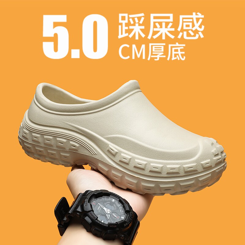 厨师鞋男女防滑防水防油厨房鞋酒店餐厅专用厚底懒人一脚蹬工作鞋