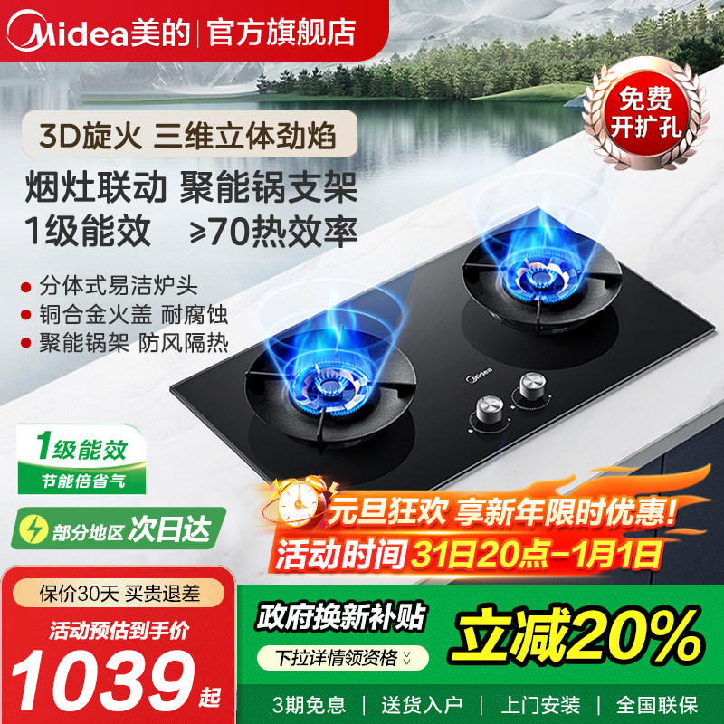 美的燃气灶Q529L猛火天然气煤气灶双灶家用大火力QD529双边定时灶