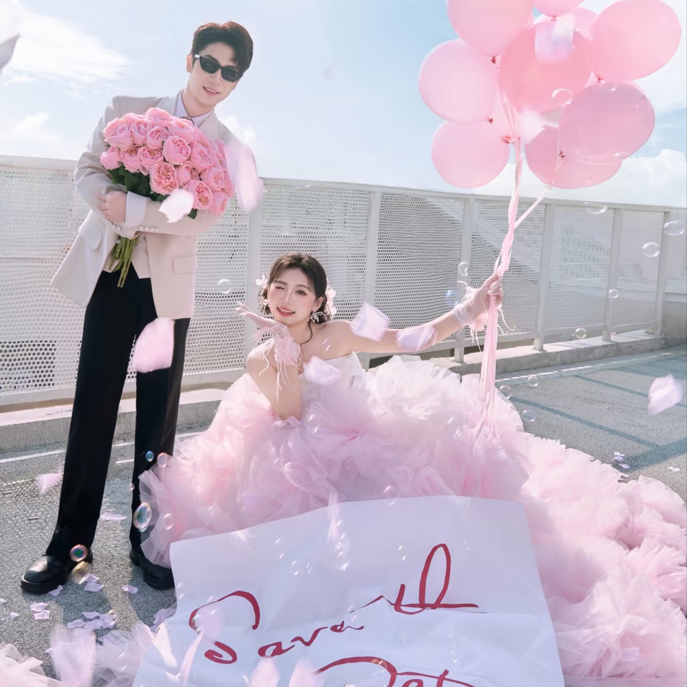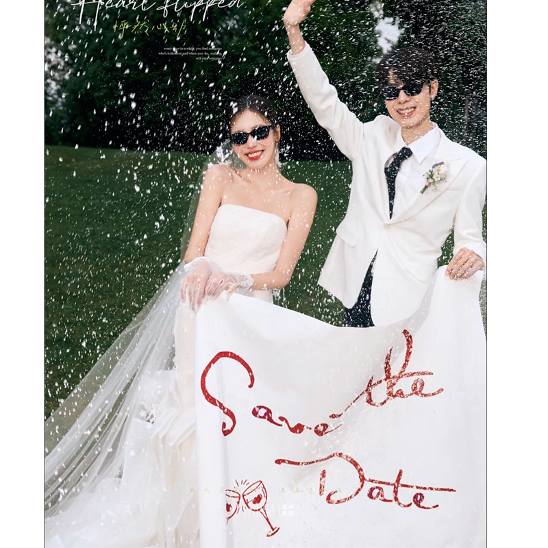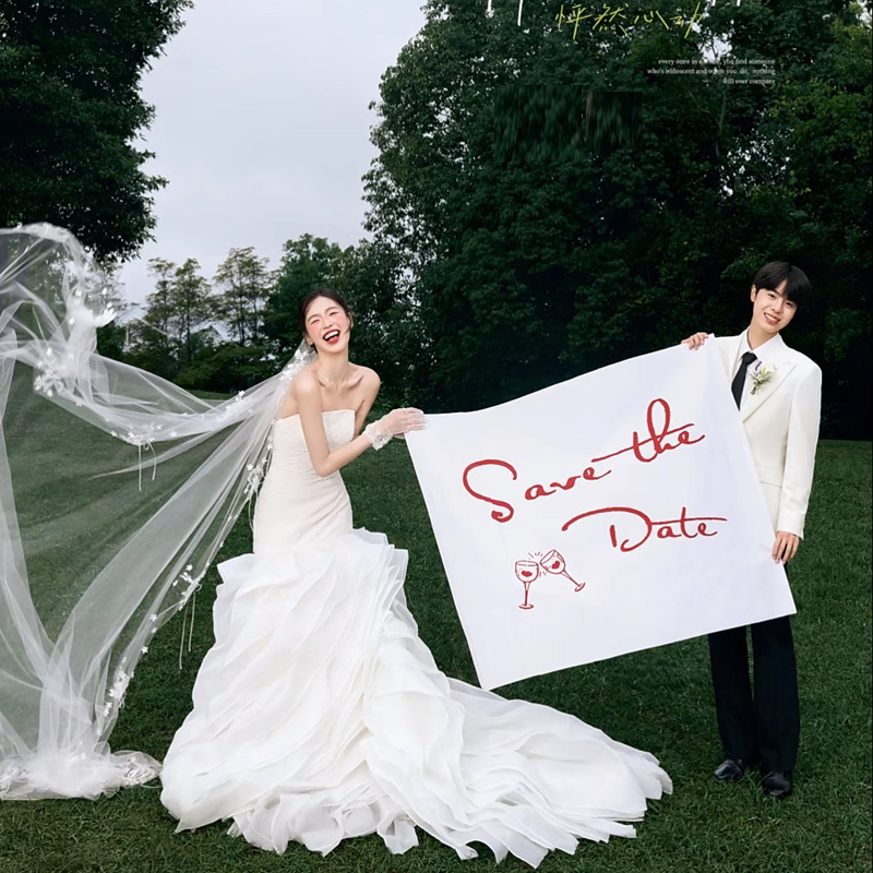 2026新款婚纱照外景旅拍道具红字母love背景布手拉条幅白色背景