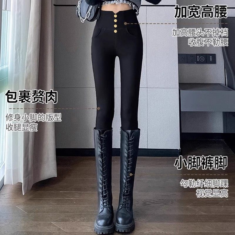 高腰打底裤女外穿2025新款秋冬季小个子加绒加厚高腰铅笔小脚棉裤