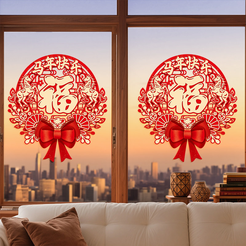 2026新年窗花马年装饰新款玻璃门贴纸静电橱窗贴春节氛围布置贴画
