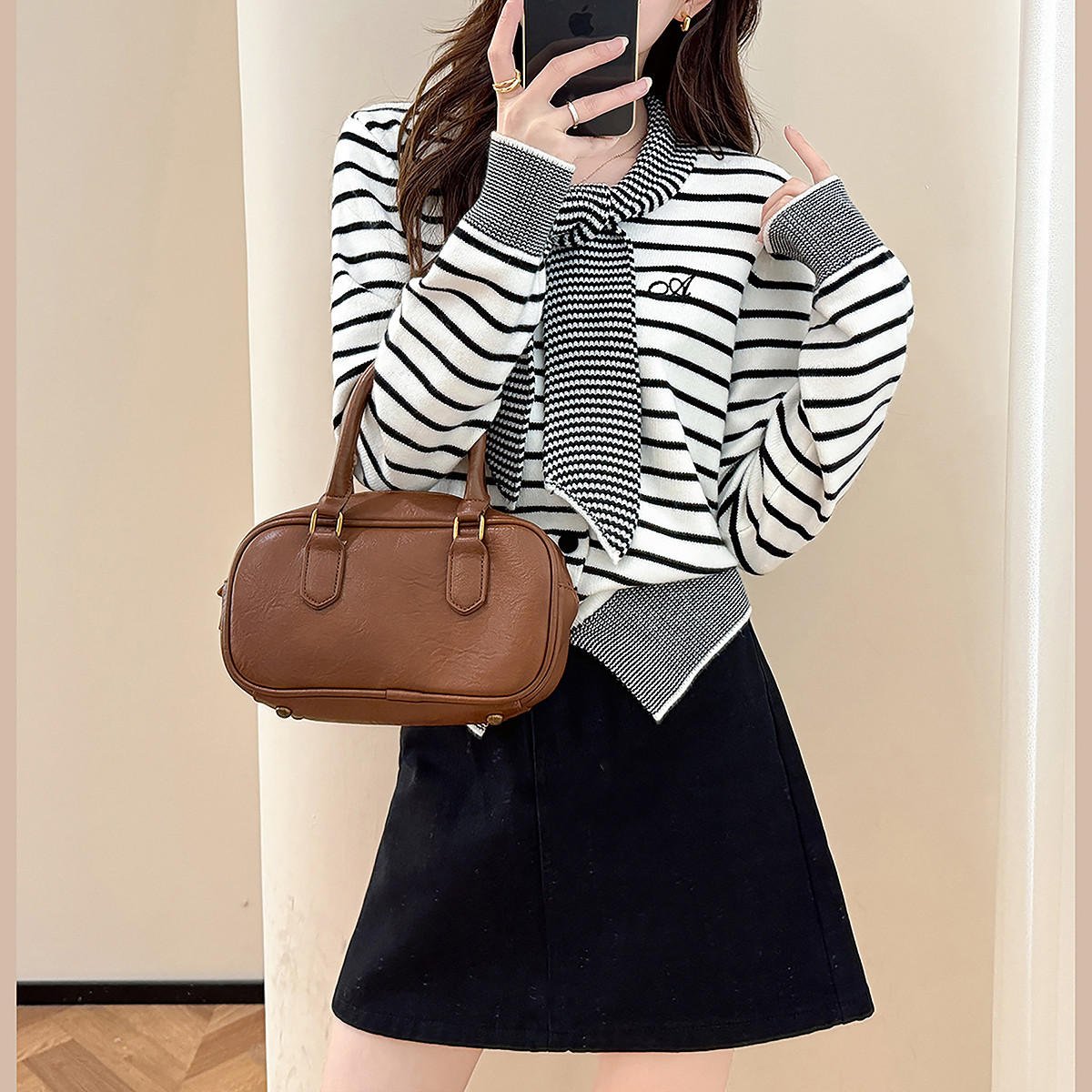 唐狮秋冬季毛衣外套女条纹系带设计感针织开衫慵懒高级感上衣tu