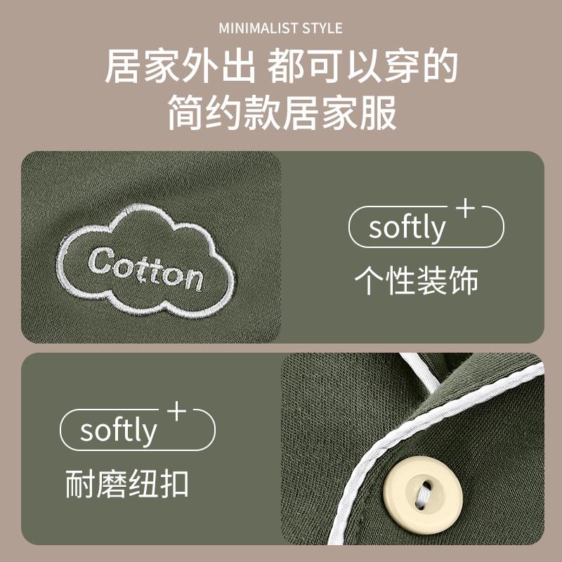 安比斯情侣睡衣舒适纯棉秋季女长袖男女同款休闲家居服套装可出门