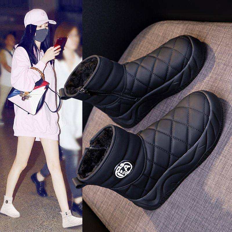 15HZ的鲸厚底雪地靴女2025新款防滑棉鞋女一脚蹬冬季雪地棉女鞋子