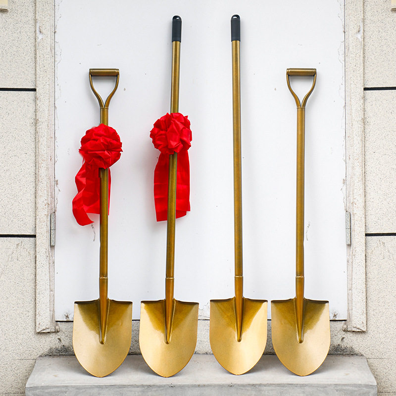 奠基铲金铲子工地动土开工大吉仪式工具庆典专用结婚铁锹乔迁花球