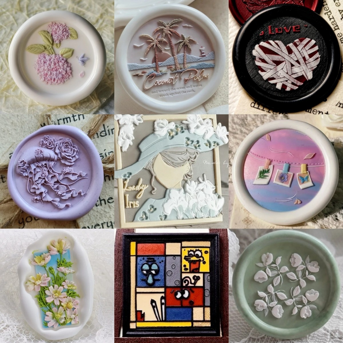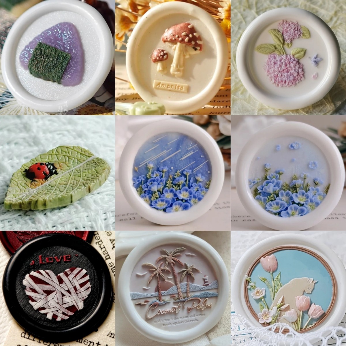 火漆印章苹果异形多层精雕蝴蝶3D浮雕宫灯玫瑰水母铜头邮票玩具
