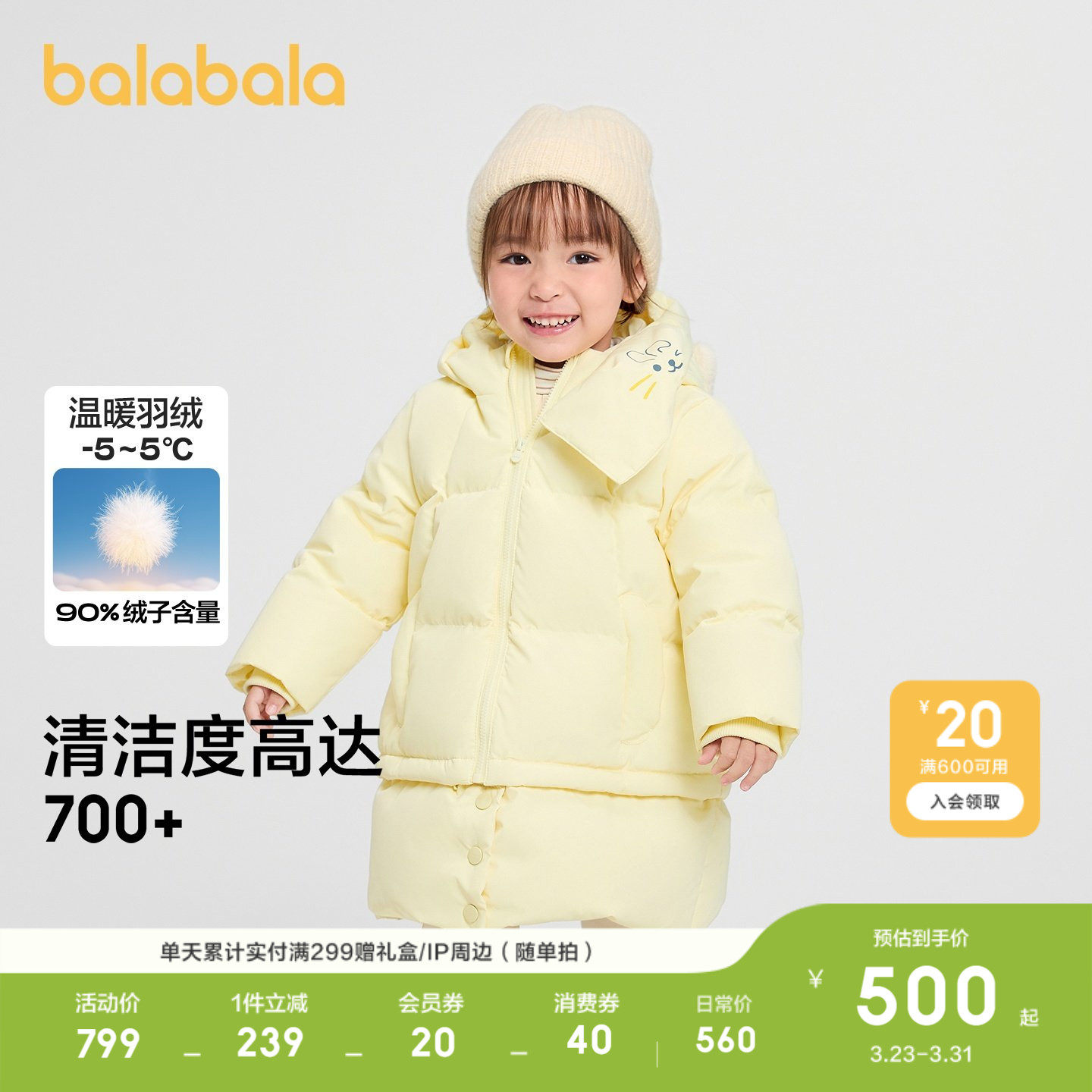 【商场同款】巴拉巴拉女童羽绒服保暖连帽外套衣服新款冬装带口罩