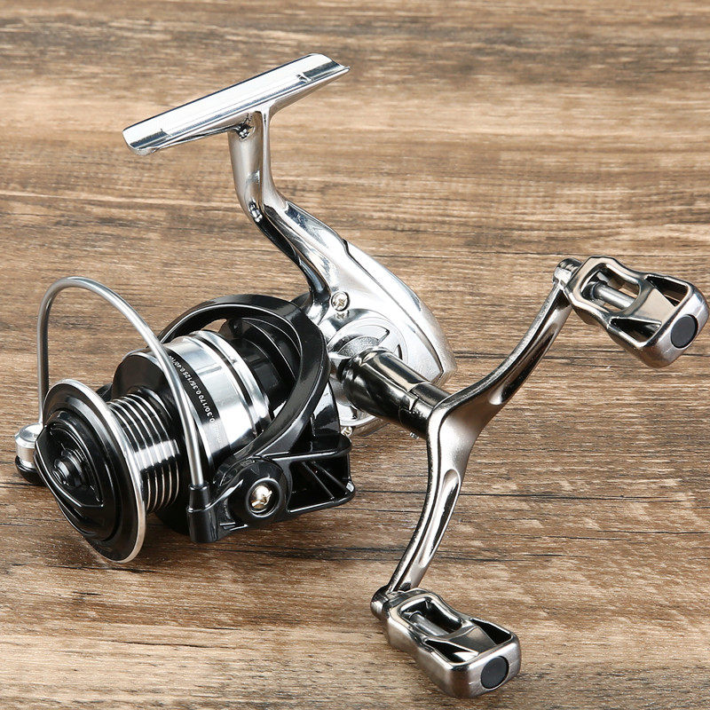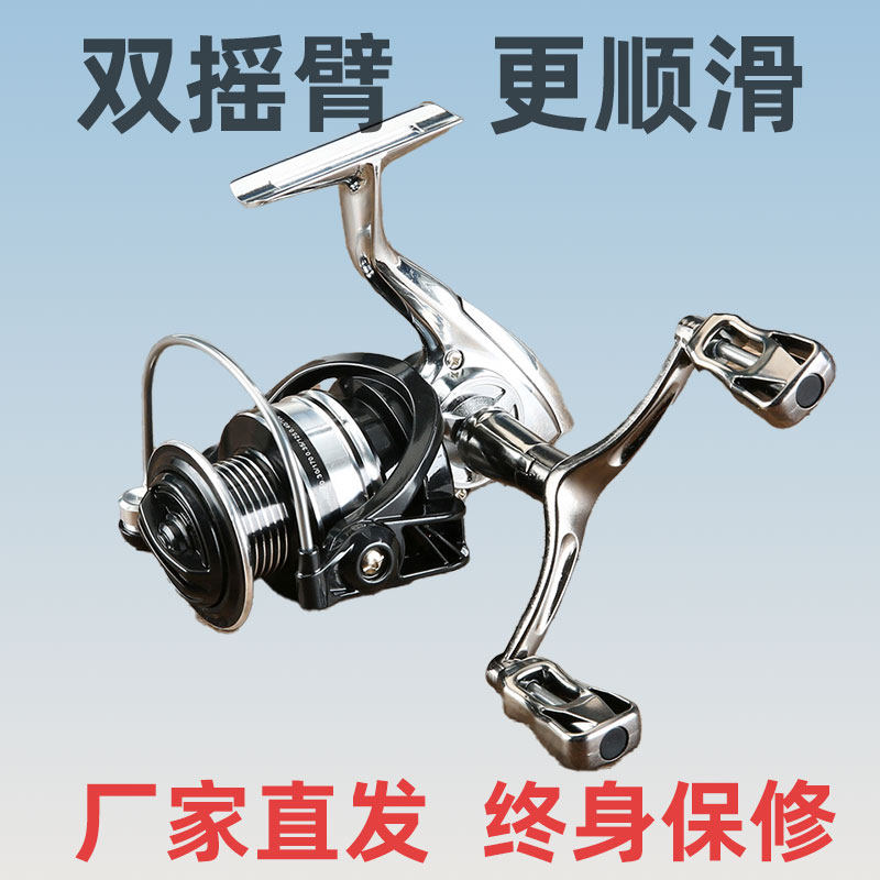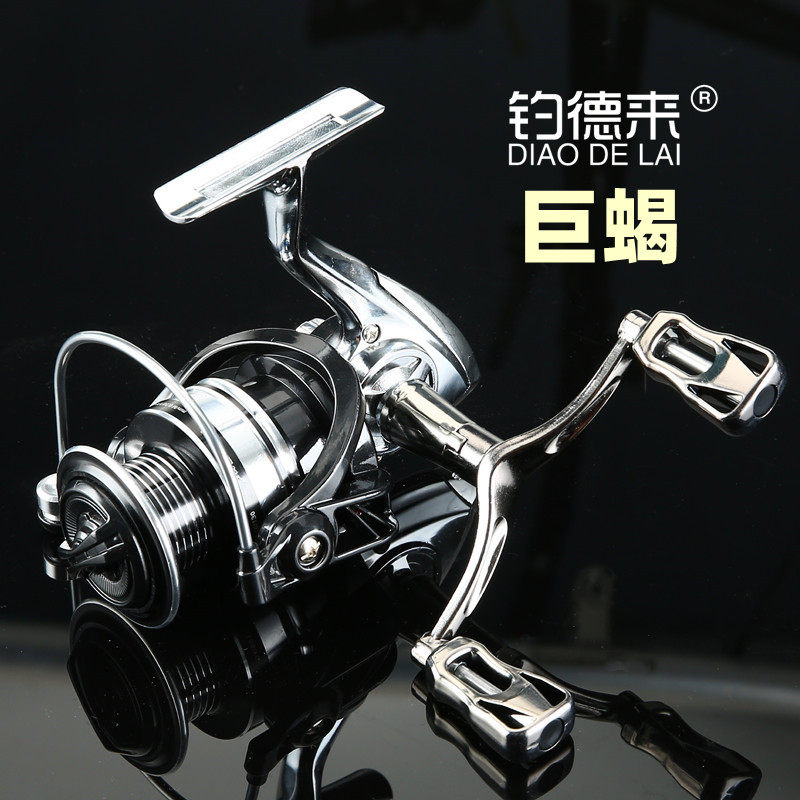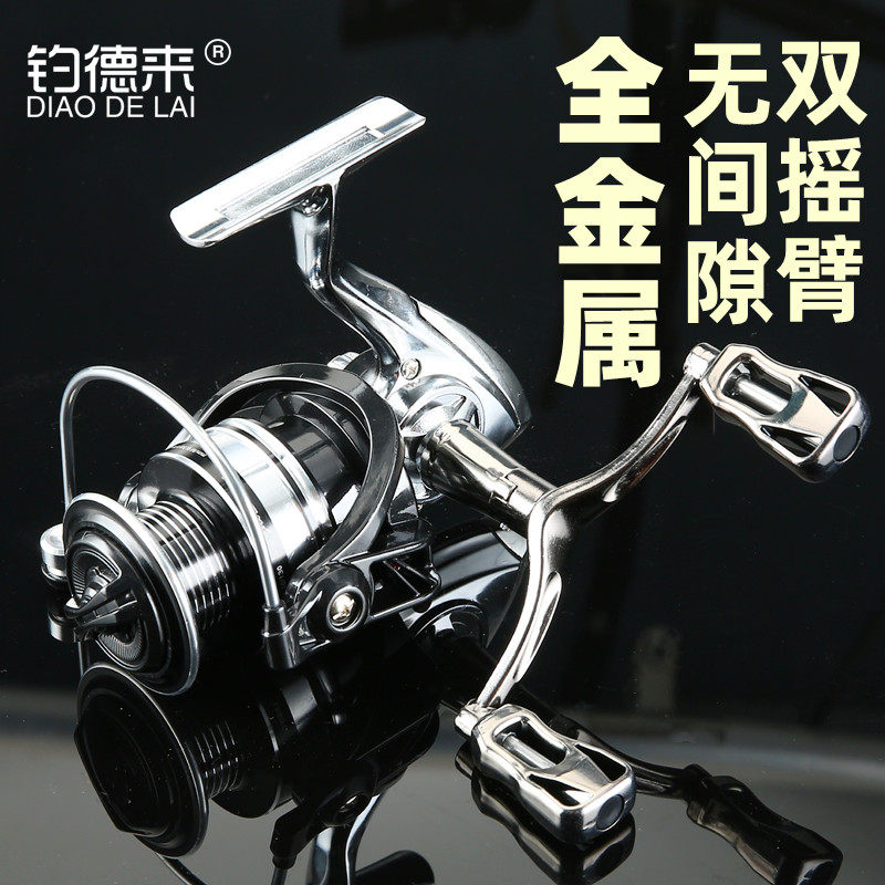 钓德来鱼轮双摇臂渔轮全金属路亚竿微物纺车轮海竿轮鱼线轮浅线杯