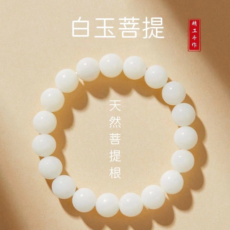 绕指柔白玉菩提根手串女小红书文玩菩提子佛珠男学生盘玩渐变手链