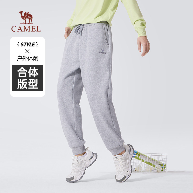 骆驼男装针织卫裤男女2025秋冬棉感加绒保暖休闲摇粒绒束脚裤